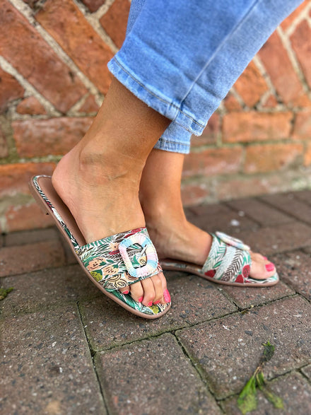 Multi Print Buckle Detail Slip Ons