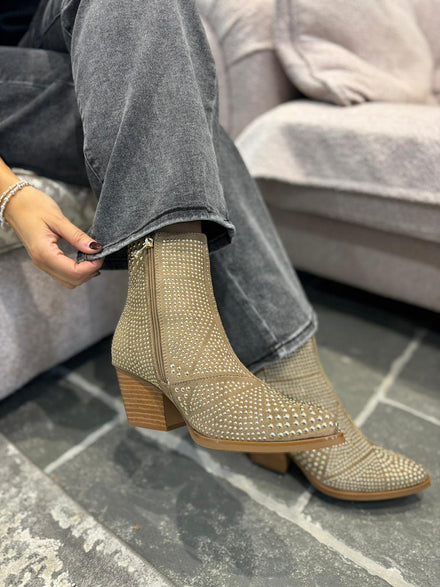 Mocha Stud Embellished Ankle Boots