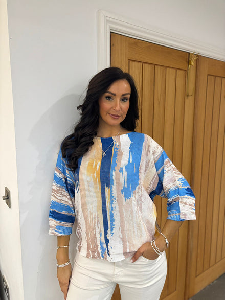 Blue Brushed Pattern Knit Top Dawn