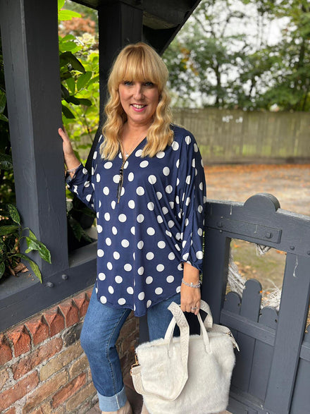 Navy Polka Dot Zip Top Poppy