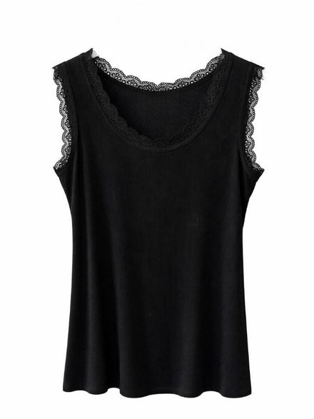 Black Ribbed Lace Vest Trina