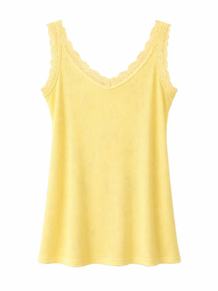 Lemon Ribbed Lace Vest Trina