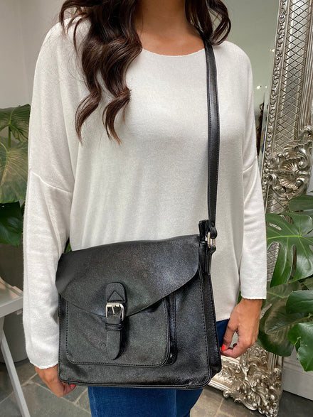 Black Metallic Front Pocket Satchel