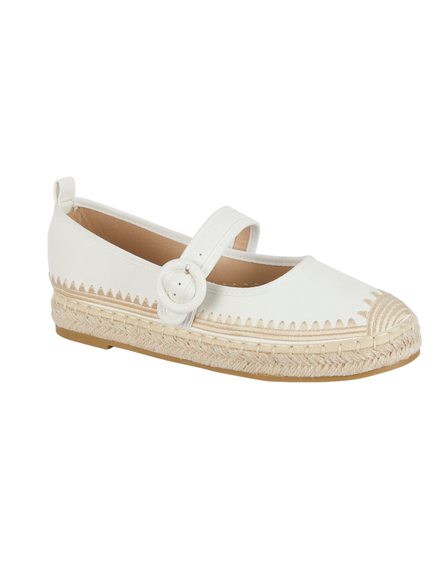 White Buckle Espadrille Flats