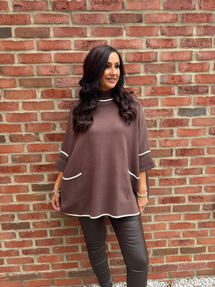 Chocolate Luxury Trim Detail Pocket Knit Anna