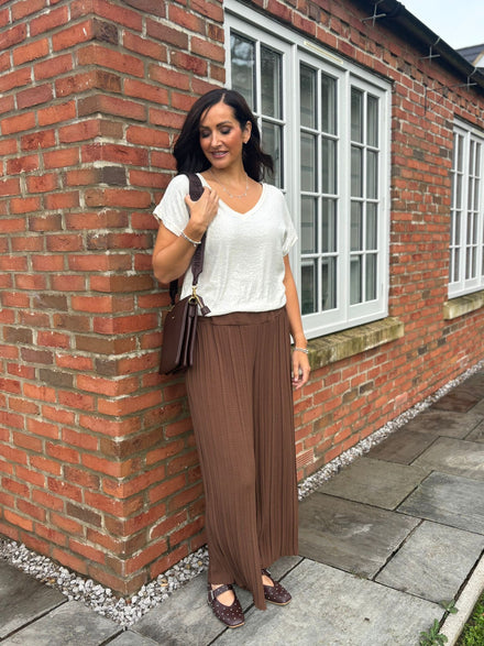 Chocolate Sleeveless Button Top and Trouser Co-Ord Piper