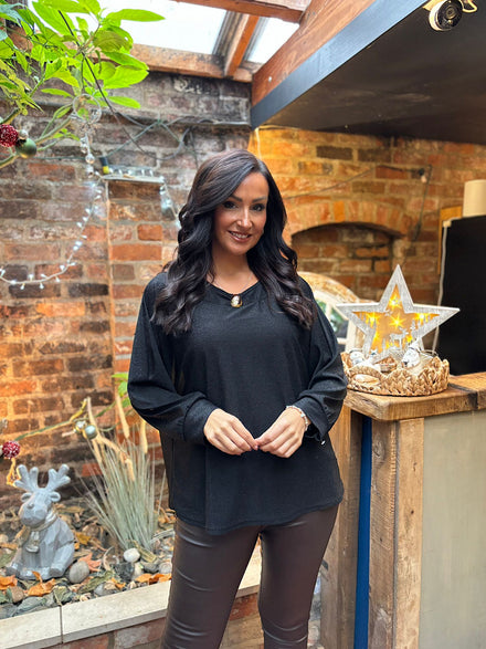Black Button Sleeve Shimmer Top Stevie