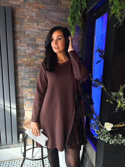 Chocolate Sequin Panel Sweatshirt Dress Olive