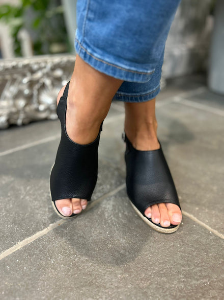 Black Open Toe Buckle Wedge