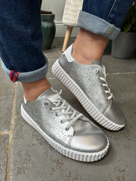 Denim Blue Pattern Stripe Shimmer Top Freya