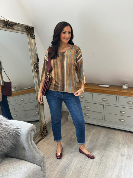 Denim Pattern Stripe Shimmer Cardigan Freya