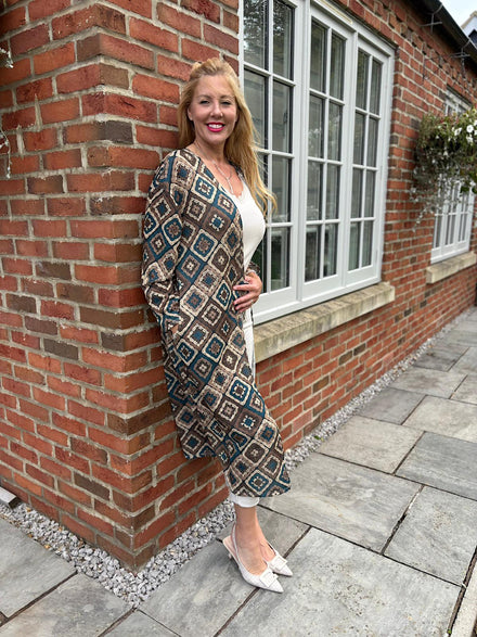 Denim Pattern Stripe Shimmer Cardigan Freya