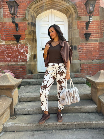 Chocolate Sleeveless Button Top and Trouser Co-Ord Piper