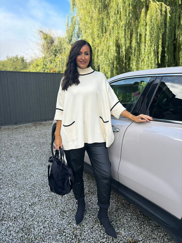 Antique Cream Luxury Trim Detail Pocket Knit Anna