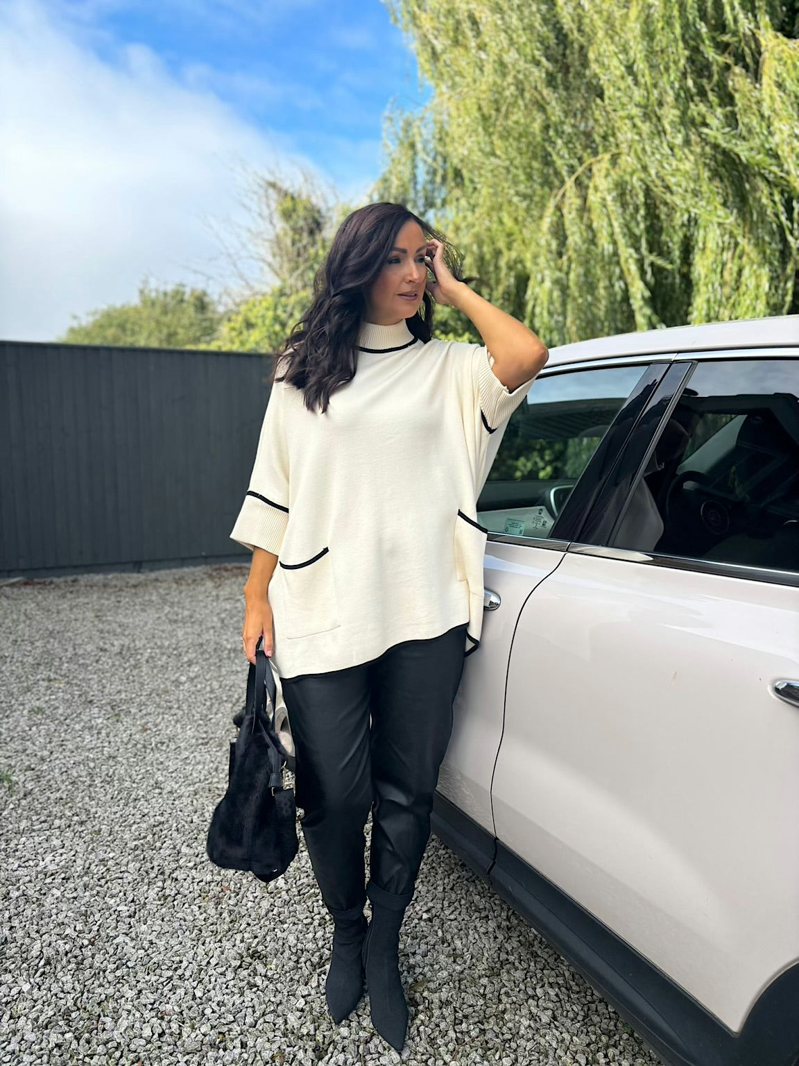 Styled with.....> Black Fluffy & Faux Leather Tote Bag / Black Coated Trousers Sasha