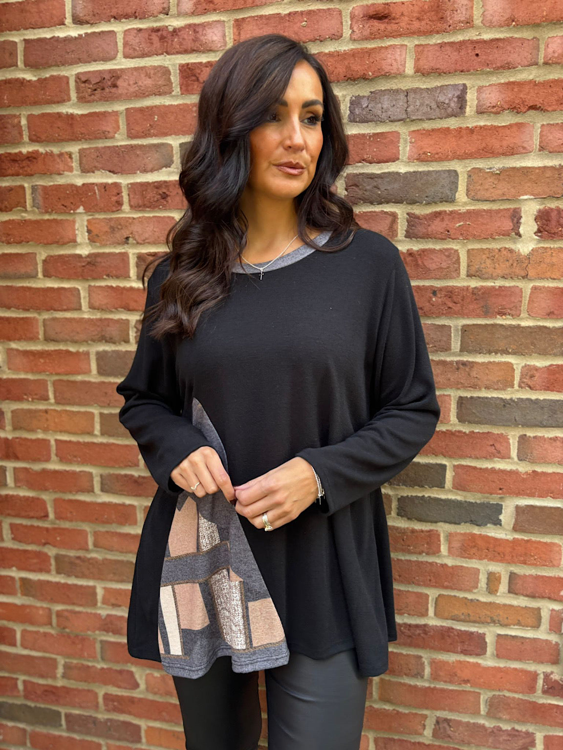 Elevate your everyday wardrobe with this striking black knit top, designed to bring understated sophistication to any outfit. The long sleeves provide warmth and versatility, while the abstract detail adds a touch of artistic flair that sets it apart from basic basics. Crafted from quality knit fabric, this piece drapes beautifully and moves with you throughout your day. The Danielle top offers the perfect balance of comfort and style.