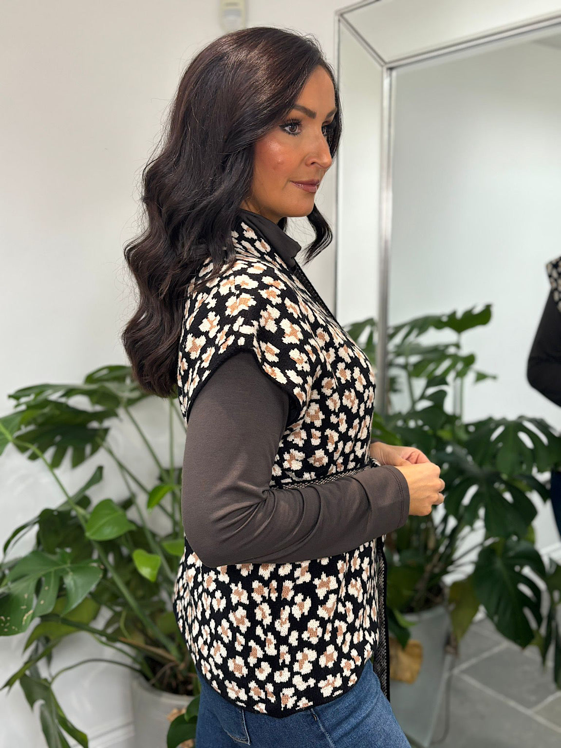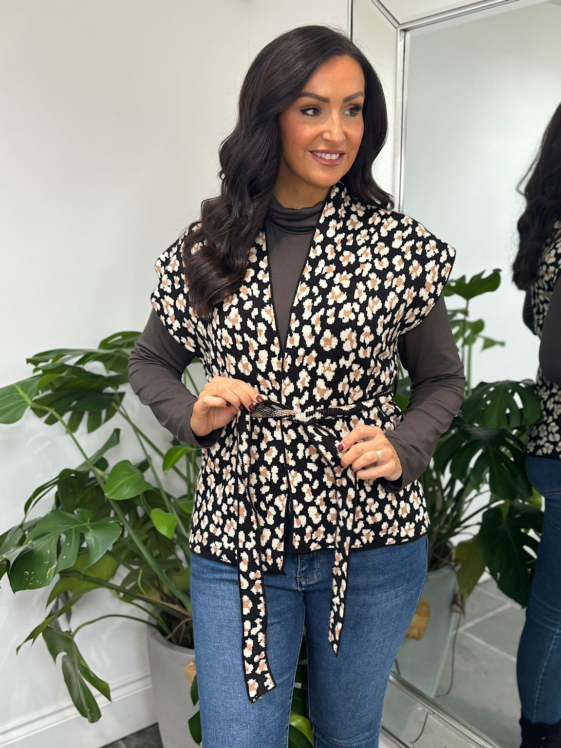 Black Belted Leopard Sleeveless Cardi Jade