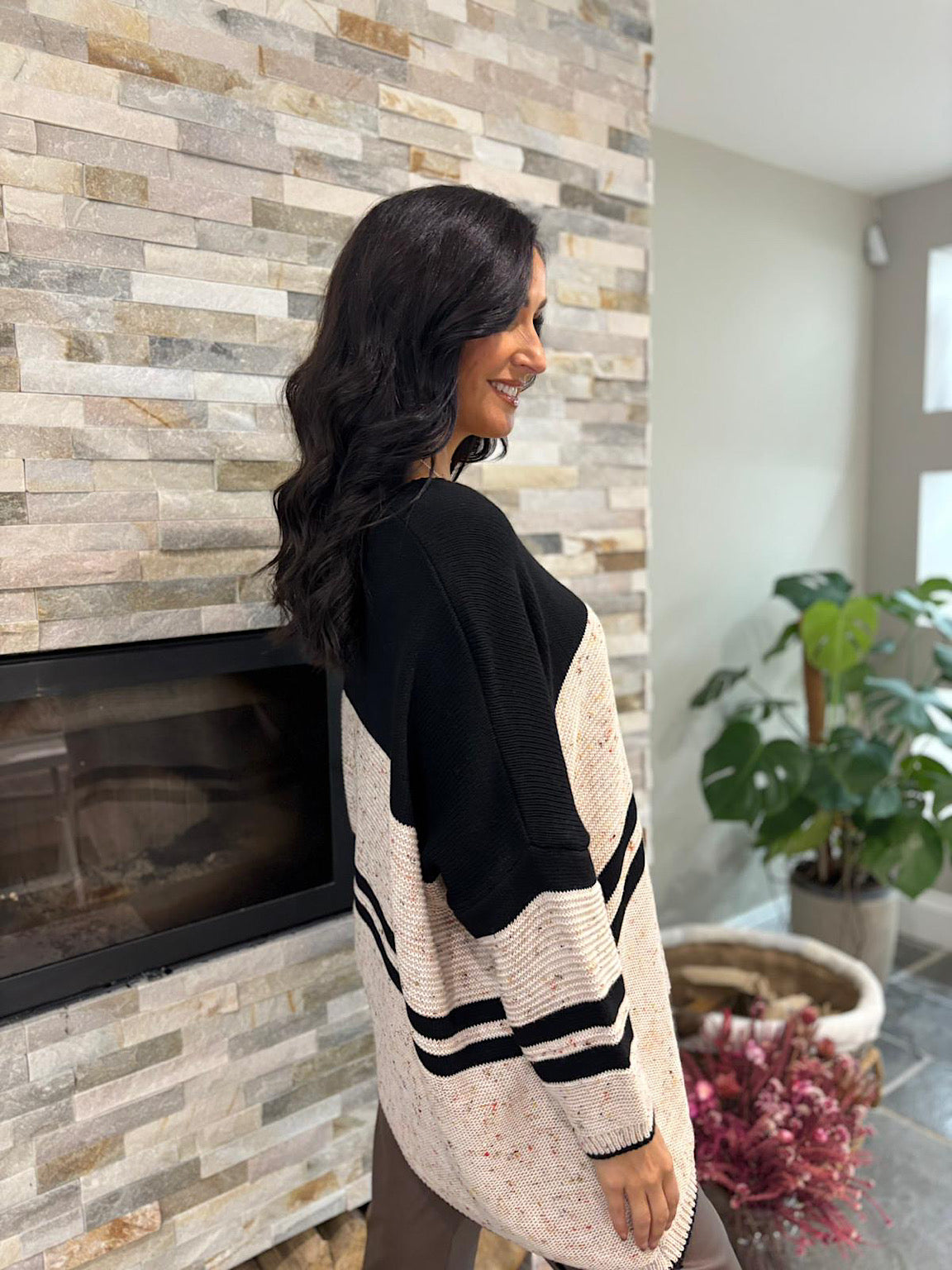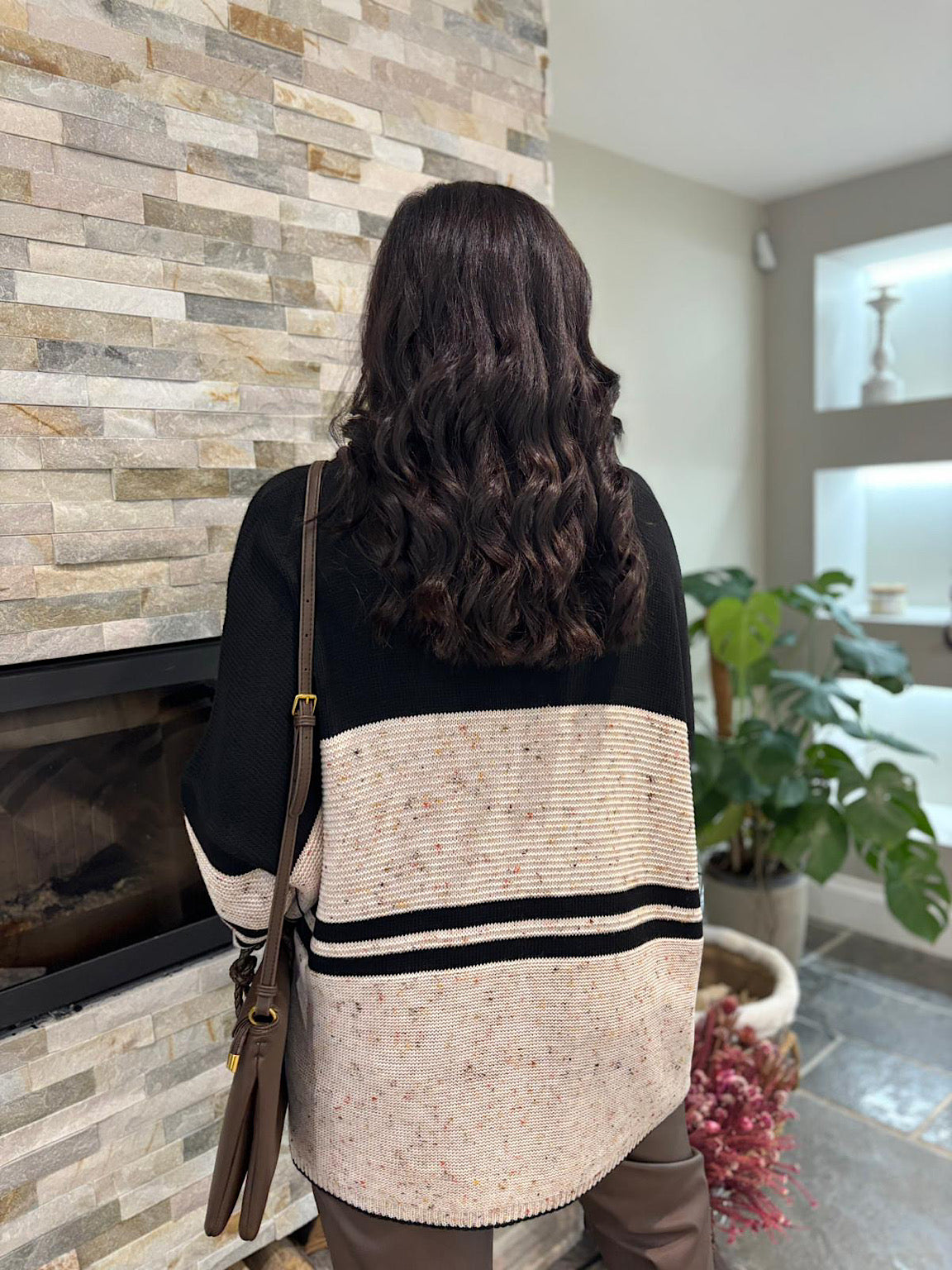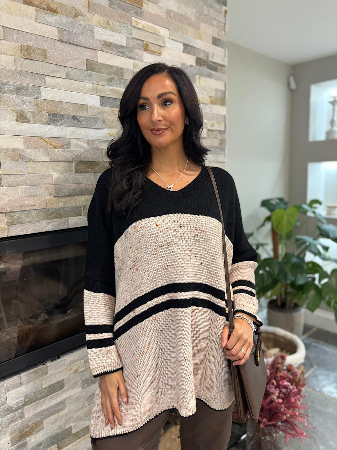 The Block Stripe Jumper Bethany features an oversized, relaxed fit for all-day comfort. Its cosy fabric is enhanced by a ribbed striped panel and subtle ribbed detailing on the sleeves, adding texture and style. Perfect for layering, this jumper combines warmth with a laid-back aesthetic.