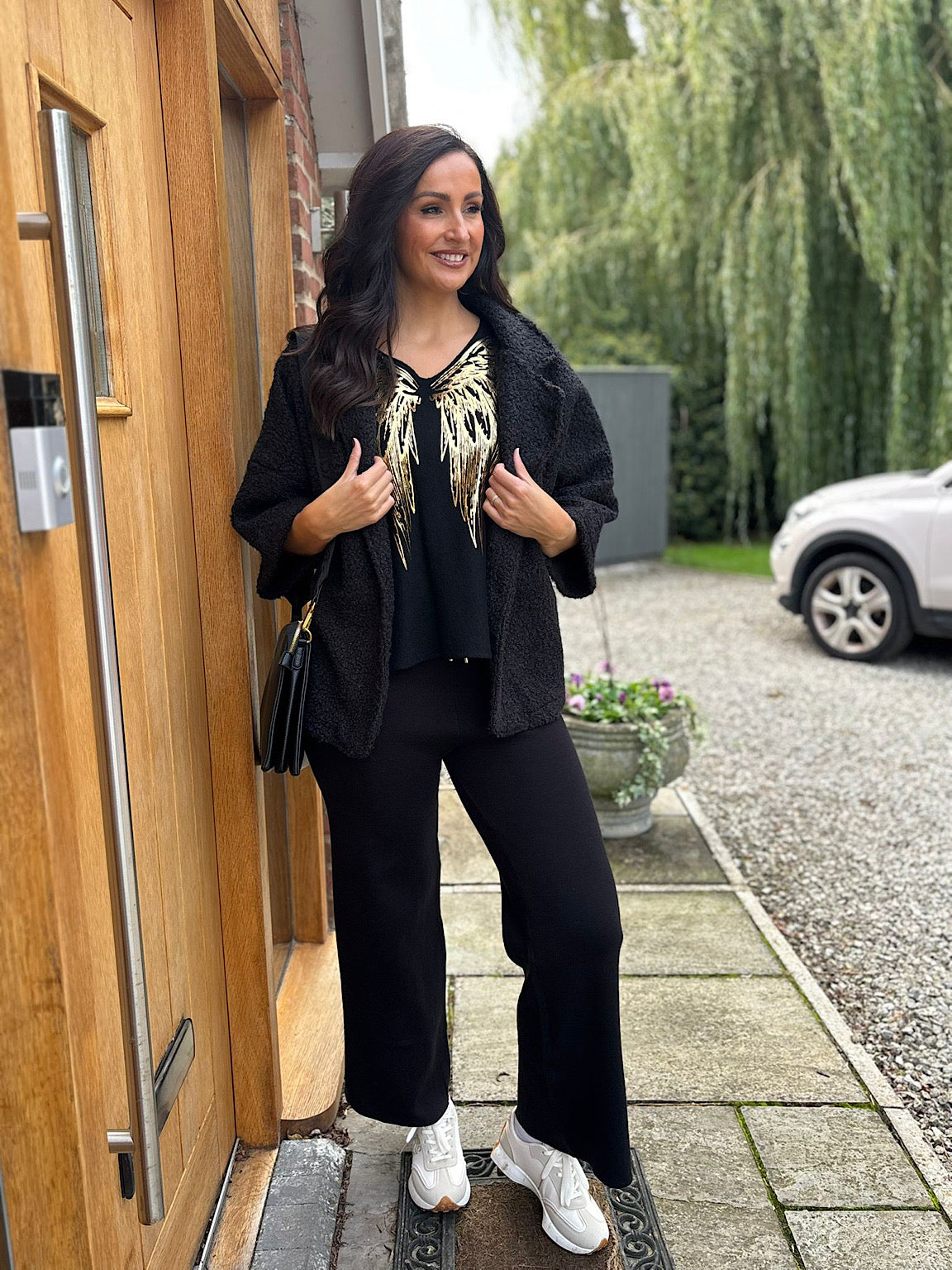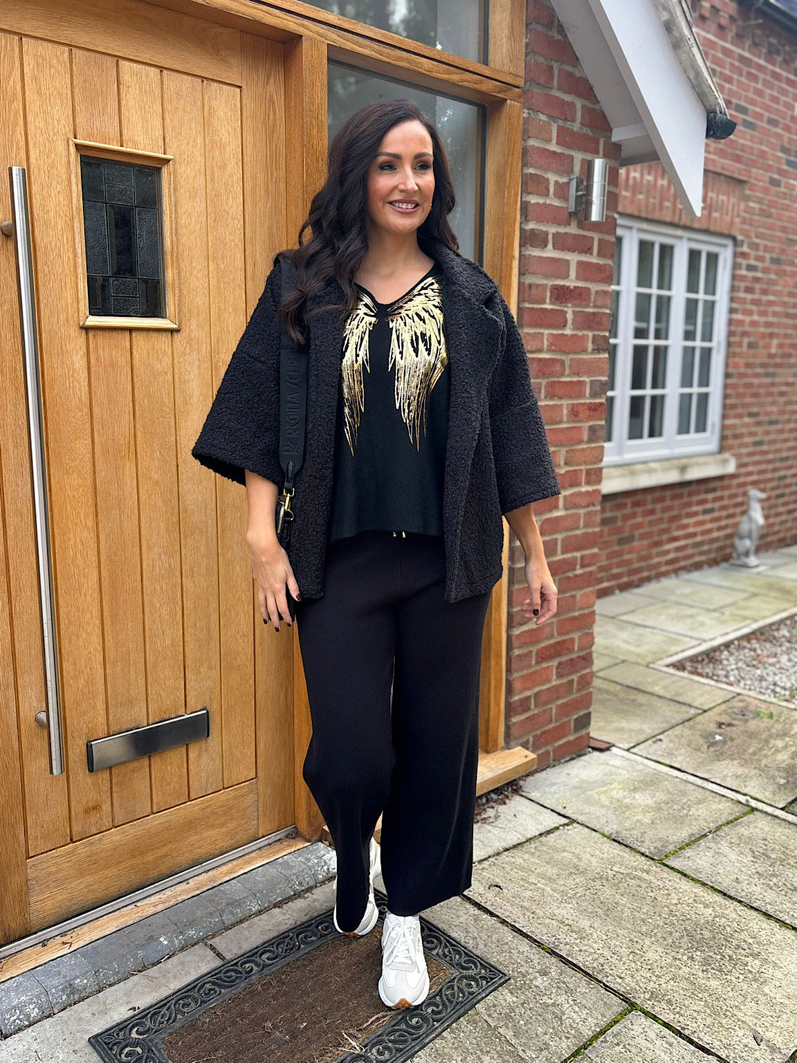 Styled with.....> Black Gold Angel Wings Knit Florence / Black Drawstring Knitted Trousers Ophelia / Stone Ebony Trainer