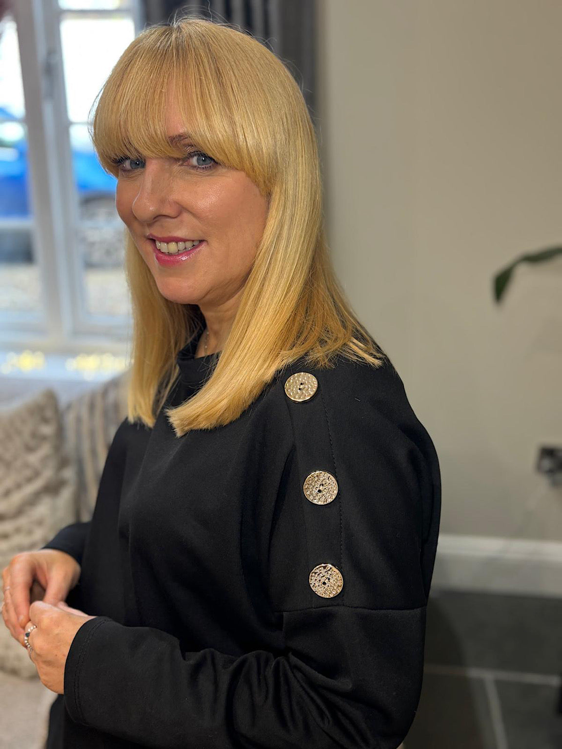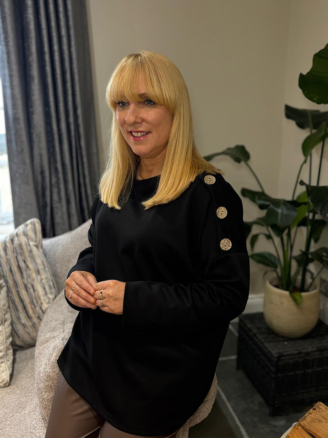 Black Button Detail Sweatshirt April