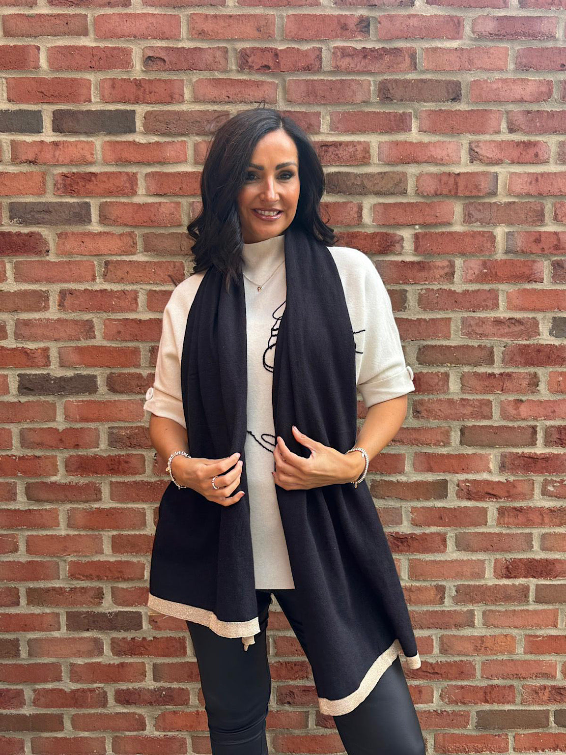 Wrap yourself in warmth and subtle elegance with this cashmere blend scarf, featuring delicate lurex shimmer woven into the edging. Soft and cosy, it adds a gentle sparkle to any outfit while keeping you comfortable throughout the day. Ideal for adding a touch of understated luxury to your winter wardrobe.