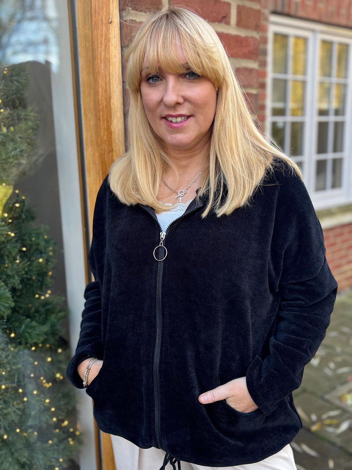 Experience everyday comfort with the Chenille Zip Hoodie Mia, featuring an indulgently soft chenille fabric that feels wonderful to wear. The practical zip fastening gives you flexibility—layer it over your favourite pieces. Its versatile design makes it the perfect companion for building effortless outfits, whether you're dressing up or keeping things casual. Invest in a piece that works as hard as you do.