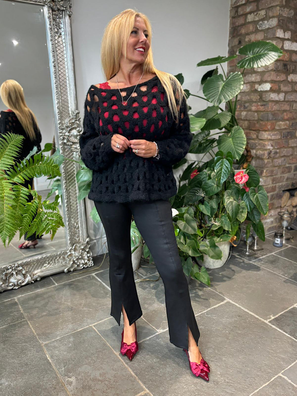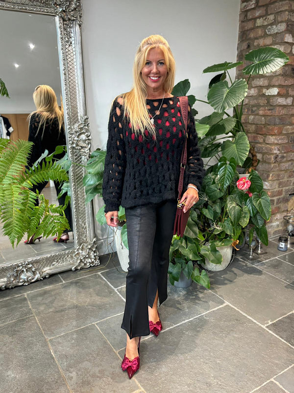 Black Coated Flared Leggings