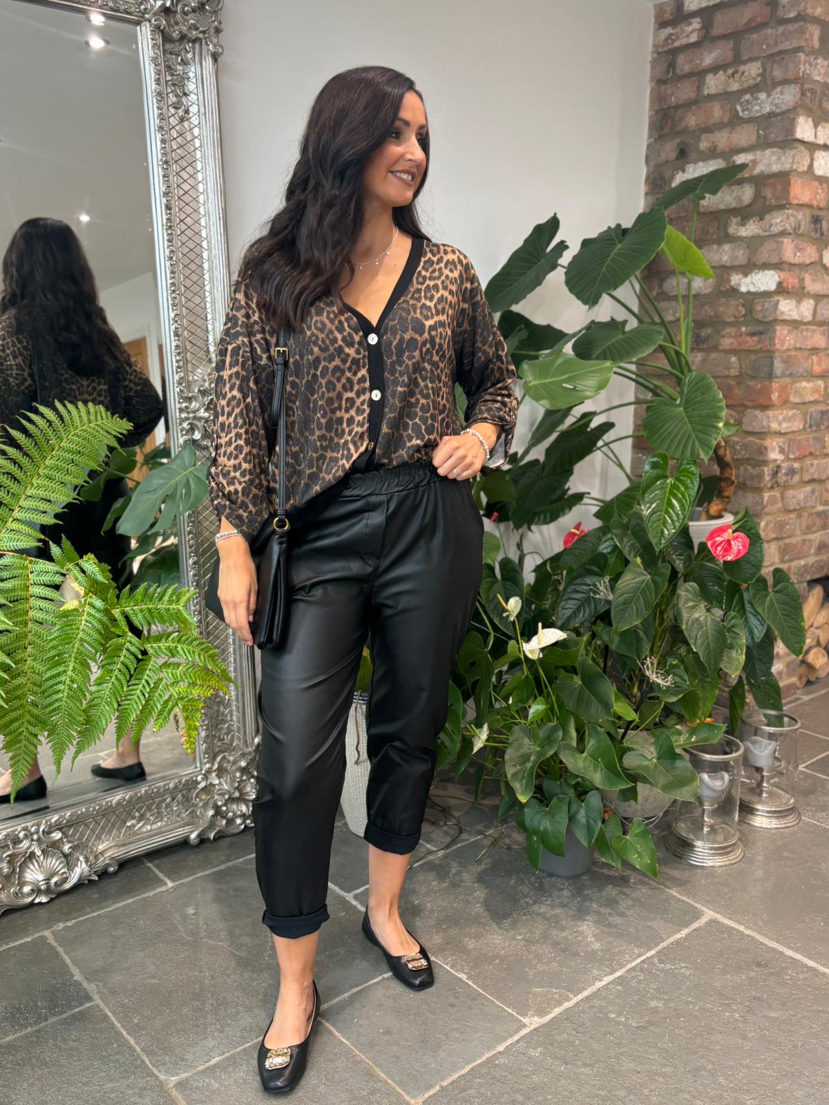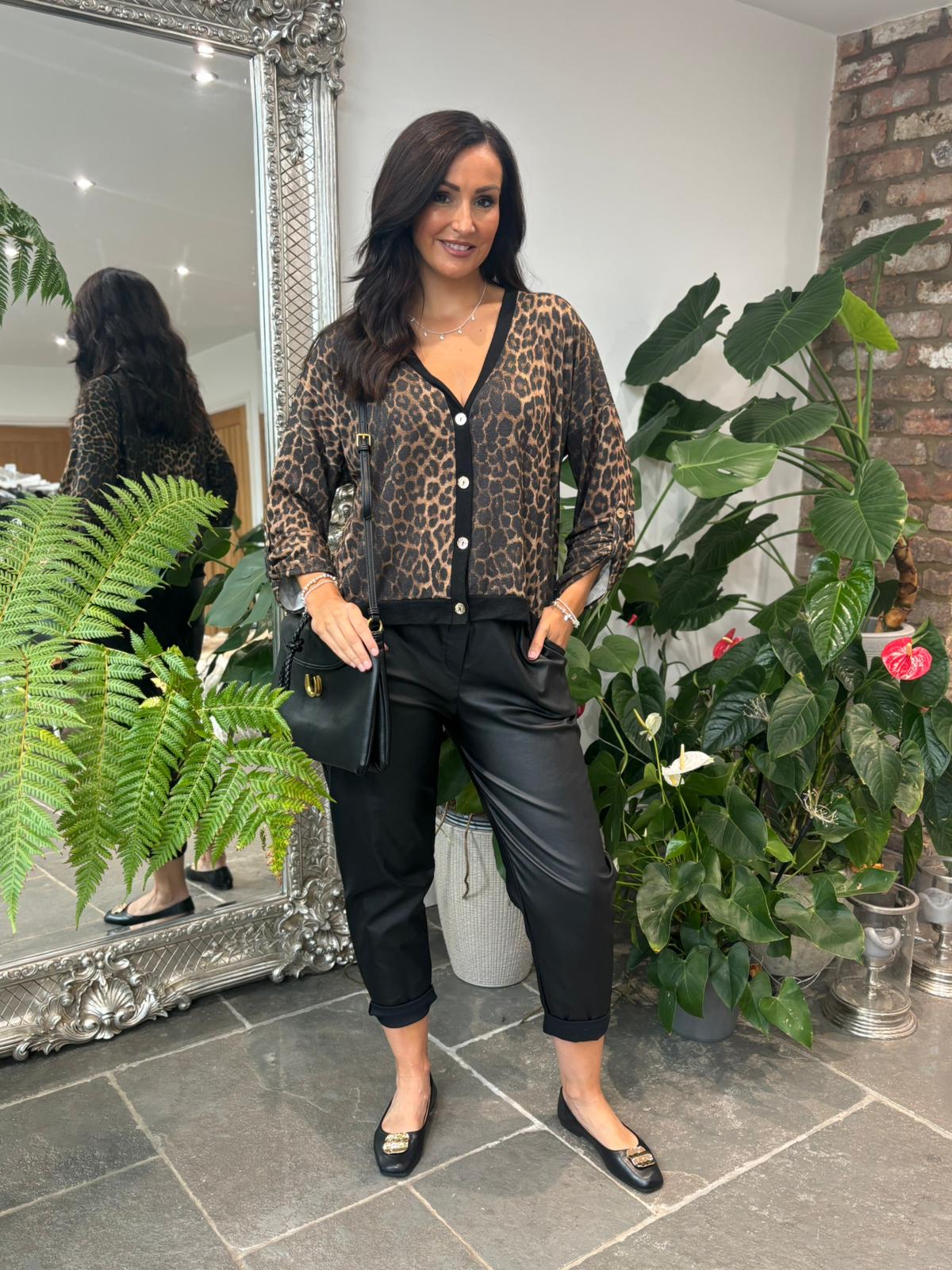 Styled with.....> Black Hammered Gold Flats / Natural Leopard Shimmer Cardigan Fern