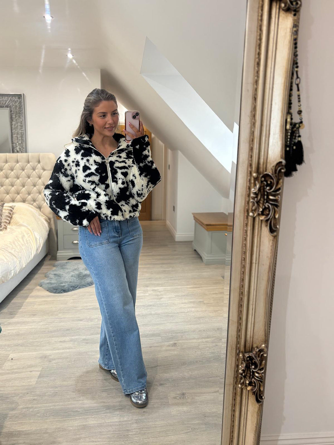 Wrap yourself in comfort with this charming Cow Print Zip Fleece Janina. Featuring a playful cow print design that brings a touch of fun to your everyday wardrobe, this full zip fleece is your go-to layer for staying warm and cosy. Perfect for casual days when you want that extra hug of softness, it's an easy way to add personality to any outfit while keeping the chill at bay.