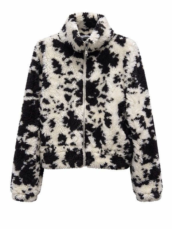 Black Cow Print Zip Fleece Janina