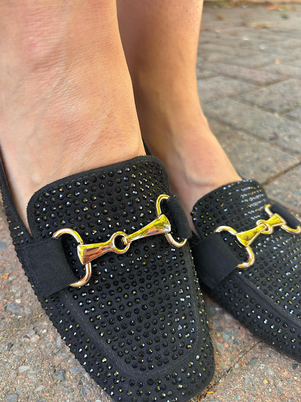 Step confidently with the Diamante Chain Loafer, a stylish slip-on flat designed for comfort and ease. Featuring sparkling diamante accents and a chic chain detail, this loafer adds a touch of elegance to any outfit while providing all-day wearability. Perfect for those seeking both fashion and practicality in one versatile shoe.