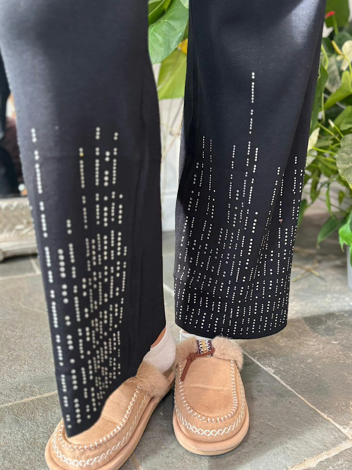 Elevate your loungewear with the Diamante Leisure Set Isla. This luxurious set features trousers with an elasticated, drawstring waist and convenient pockets, offering both comfort and practicality. Adorned with subtle diamante detailing, it adds a refined sparkle to your casual wardrobe, perfect for relaxed yet sophisticated days.
