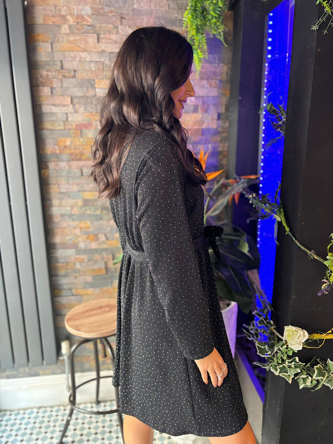 Black Diamante Sparkle Belted Dress Ruth