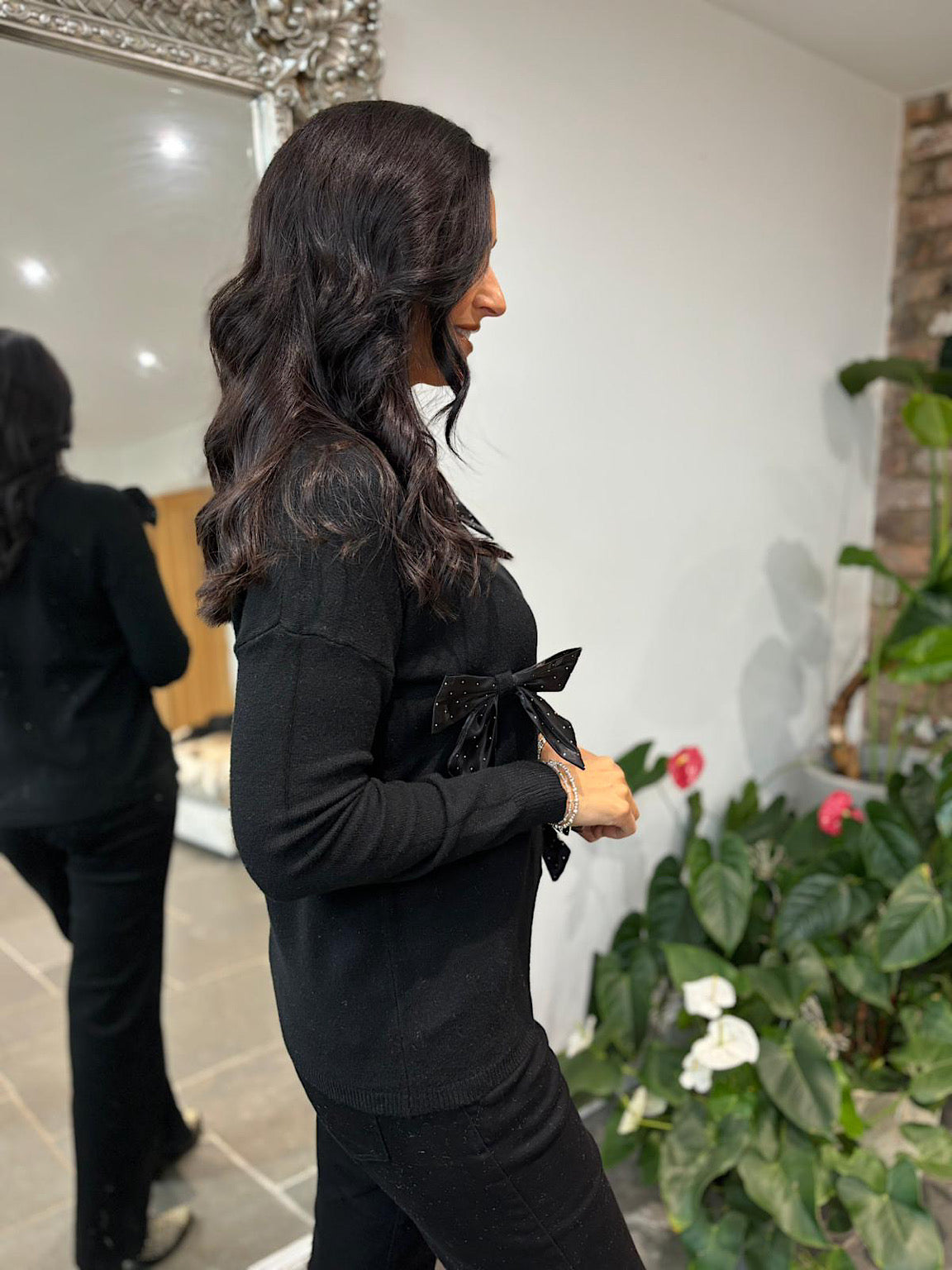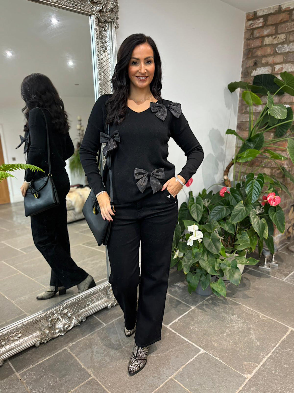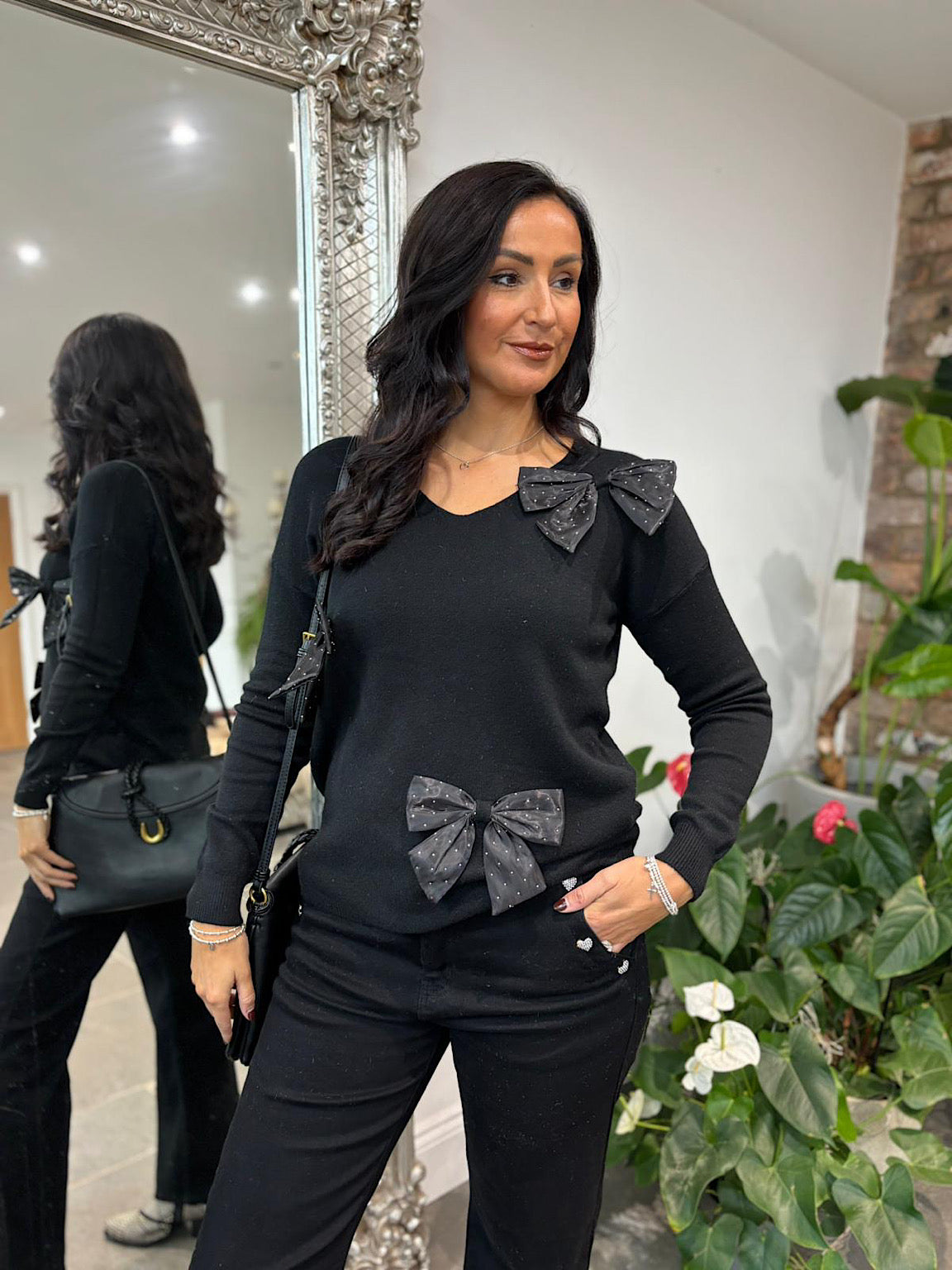Black Embellished Bow Knit Natalie