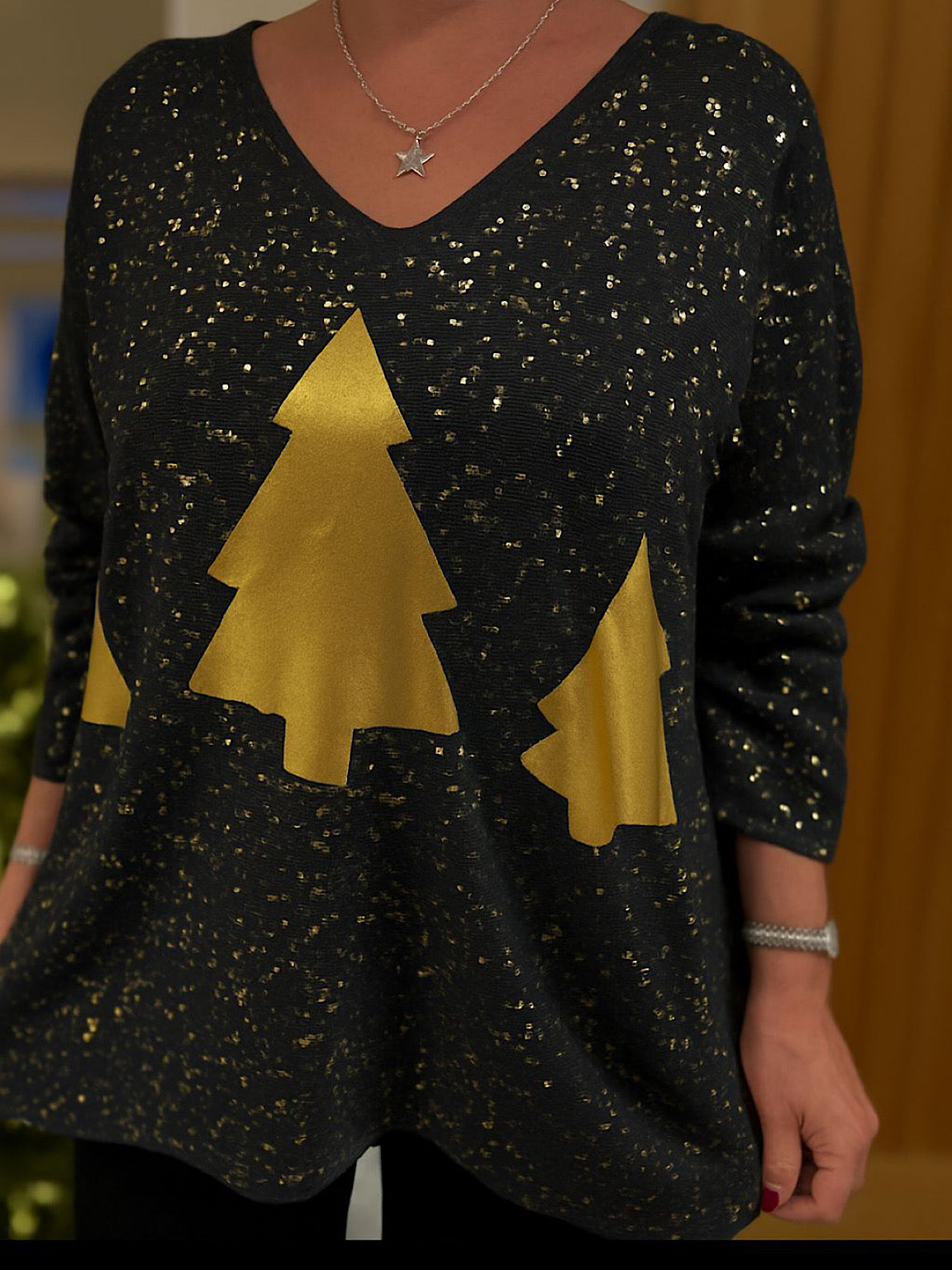 Embrace the magic of the season with this enchanting Gold Knit Ava. Crafted from luxuriously soft material, this festive piece features a shimmering gold foil design that catches the light beautifully. Perfect for adding warmth and holiday sparkle to your everyday wardrobe, it's the cosy companion you'll reach for throughout the festive period. Celebrate in style and comfort.