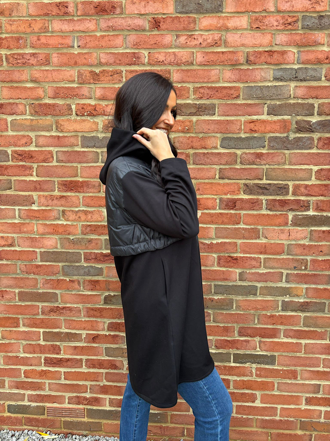 Black Half Quilted Sweat Jacket Lois
