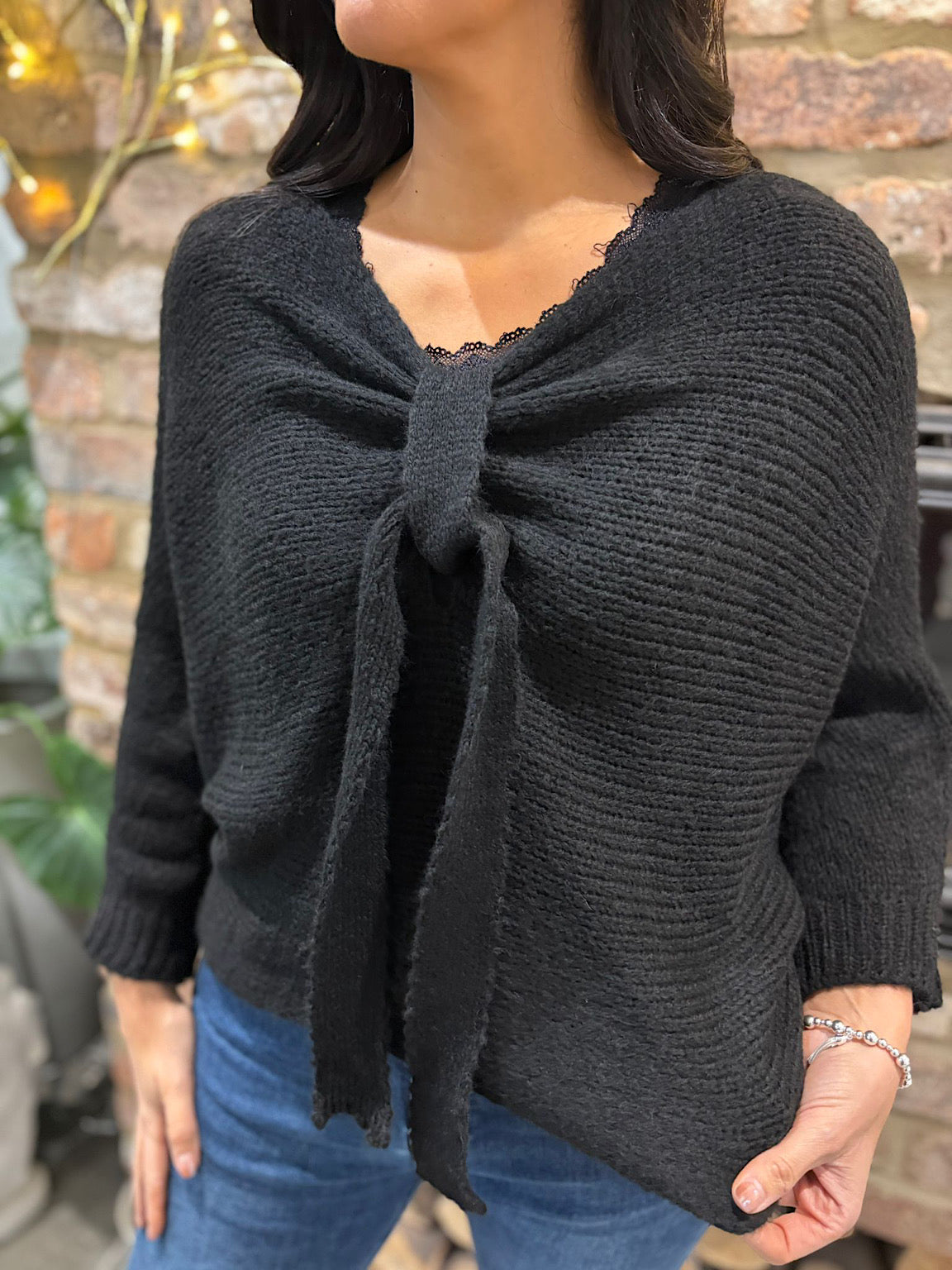 Wrap yourself in comfort with this Knitted Tie Front Jumper Libby. Crafted from soft, cosy fabric that feels wonderful against your skin, this piece features a charming tie front design that lets you create your own ruched effect for a personalised fit. The relaxed batwing sleeves add an effortless, flattering silhouette that works beautifully with any outfit. Perfect for layering or wearing solo, this jumper is your go-to for those moments when you want to feel both stylish and embraced in warmth.