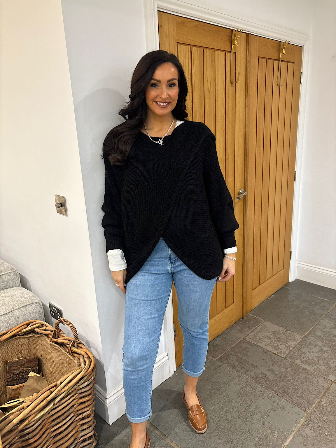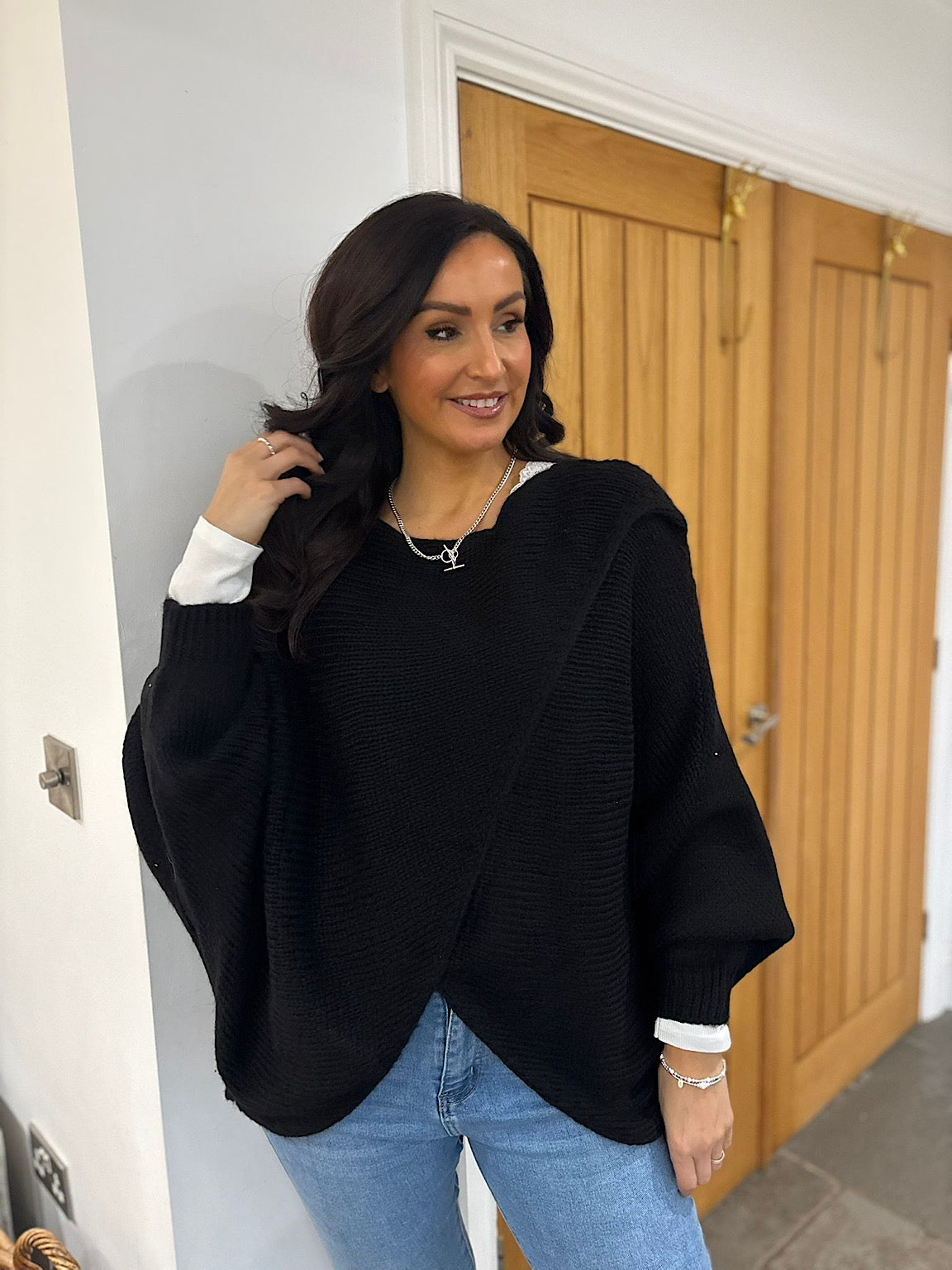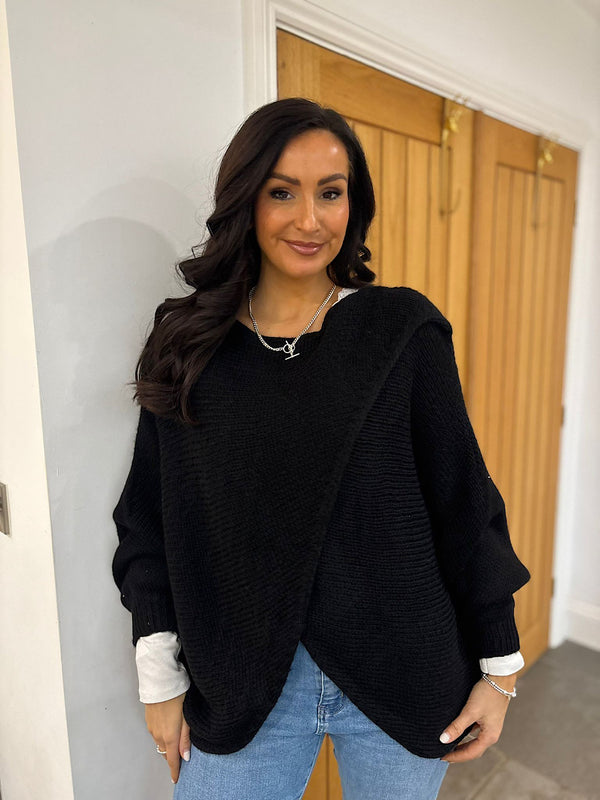 Black Knitted Longline Wrap Jumper Nell