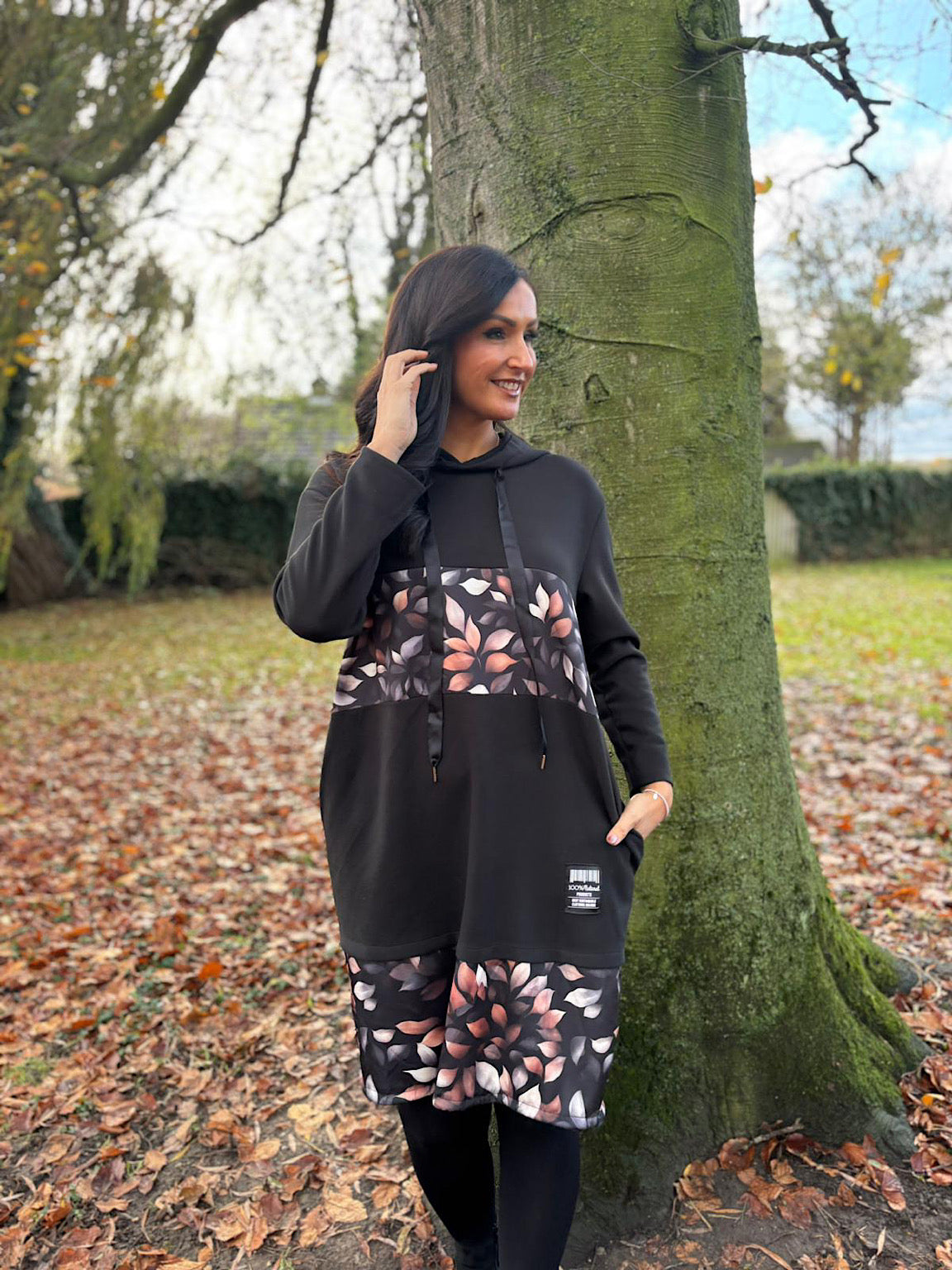 Wrap yourself in comfort with this beautifully crafted sweat dress featuring a striking leaf panel design. The luxuriously soft fabric feels wonderful against your skin, while the practical drawstring bottom lets you adjust the fit to suit your style. Complete with a cosy hood, this piece effortlessly transitions from relaxed loungewear to casual everyday wear. Perfect for those moments when you want to feel both supported and utterly pampered.