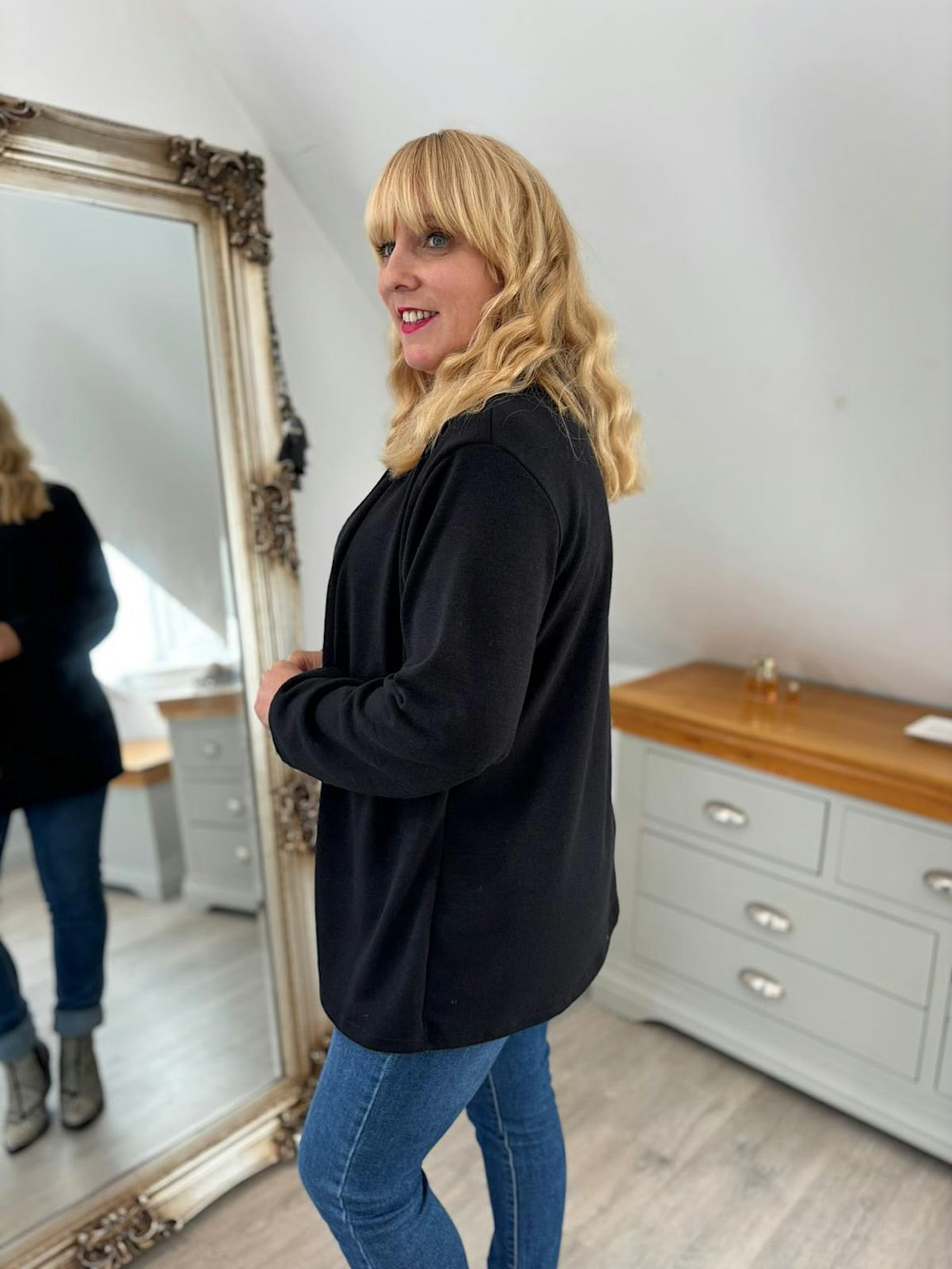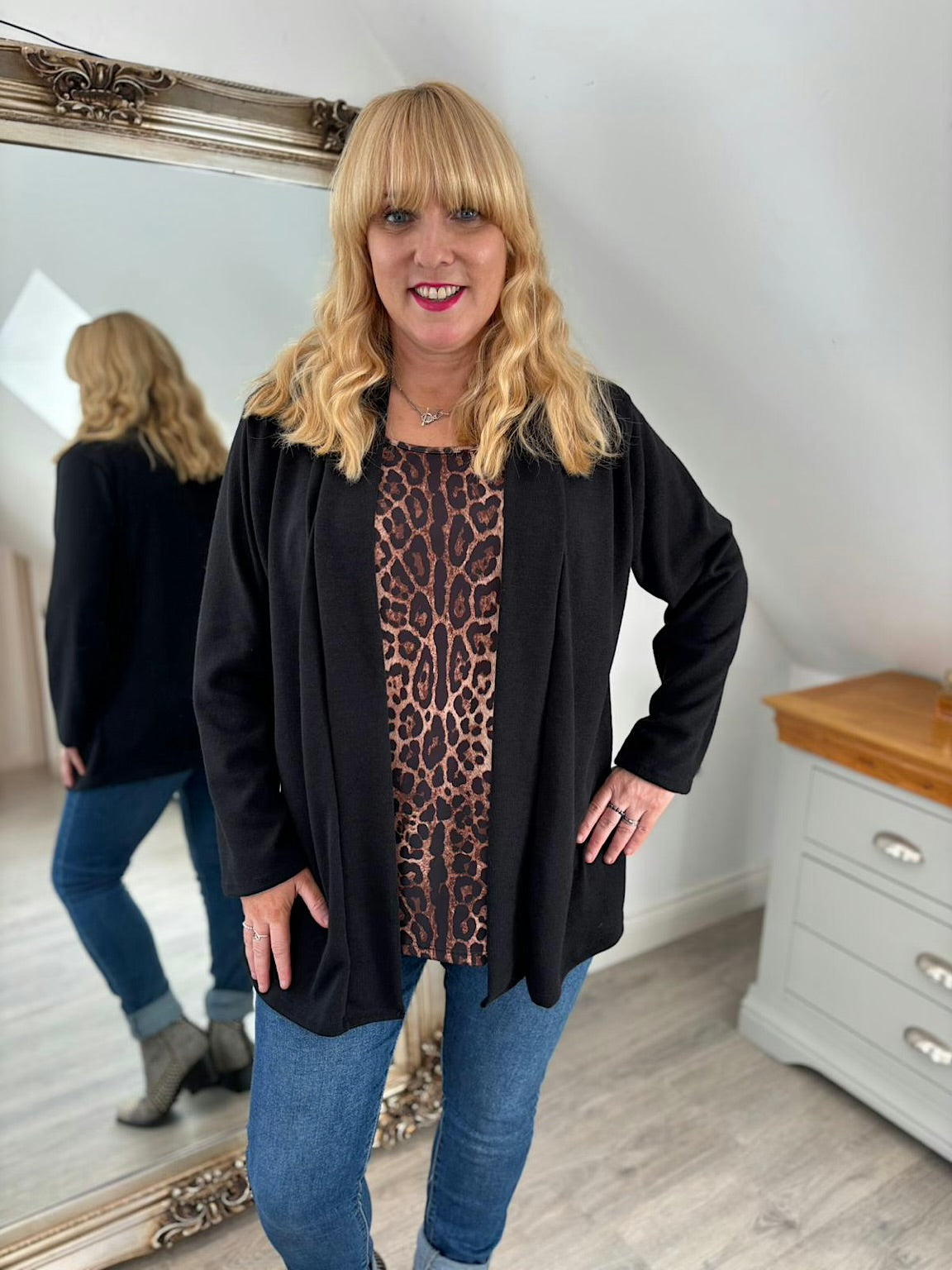The Layered Cardi Zoe combines a cardigan with an attached top underneath, offering seamless layering for effortless comfort and style. This design ensures warmth and ease, making it a reliable choice for everyday wear while maintaining a polished look. Perfect for those who appreciate practicality without sacrificing fashion.