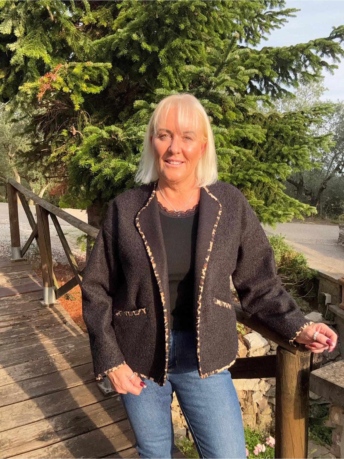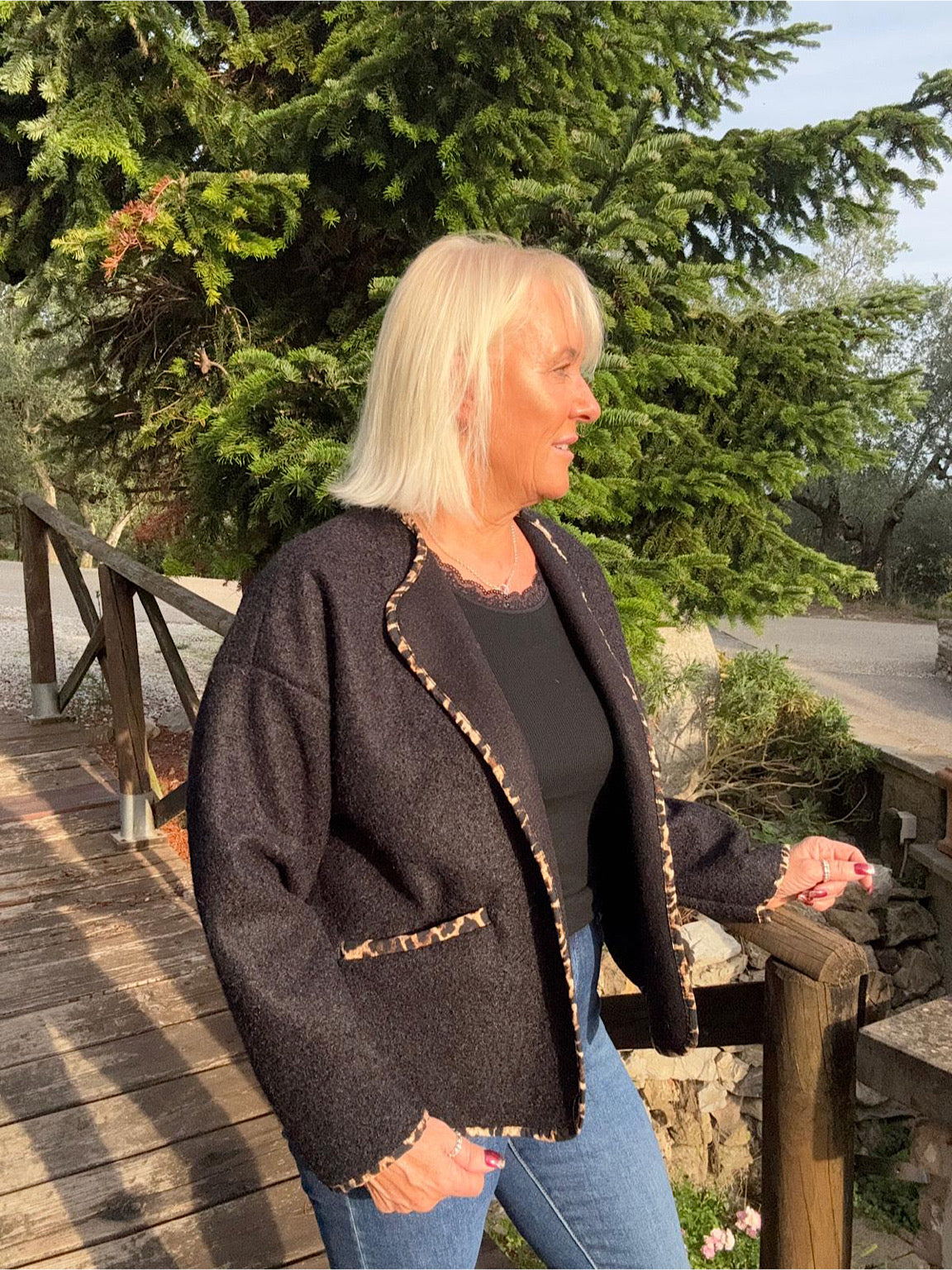 Elevate your wardrobe with this Leopard Trim Jacket, combining classic texture with a refined leopard print trim for a touch of bold elegance. Its structured silhouette offers a sophisticated finish, perfect for adding effortless style to both casual and formal ensembles. This jacket beautifully merges timeless design with a subtle statement detail.
