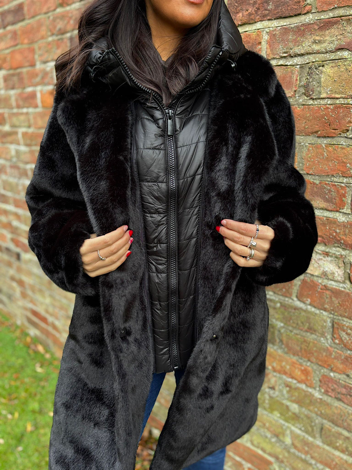 Introducing the Aspen, a luxuriously soft faux fur coat that combines elegance with everyday comfort. Crafted from premium faux fur, this stunning piece keeps you cosy and warm through the season whilst maintaining a refined, classy aesthetic. The removeable quilted inlay complete with hood offers versatile layering options—secured by a convenient zip—and adapts to your needs. Practical front pockets provide functional storage without compromising style. Whether you're dressing up or keeping it casual, the Aspen is your go-to statement coat.