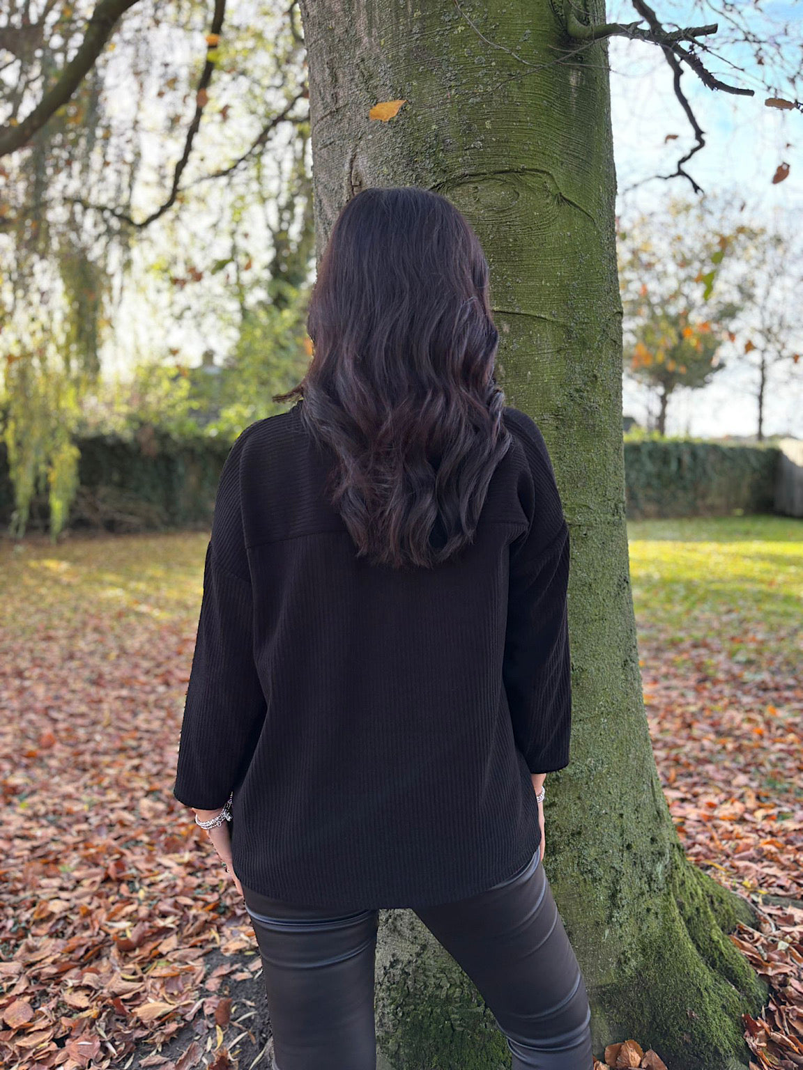 Black Metallic Heart Ribbed Sweatshirt Brooke