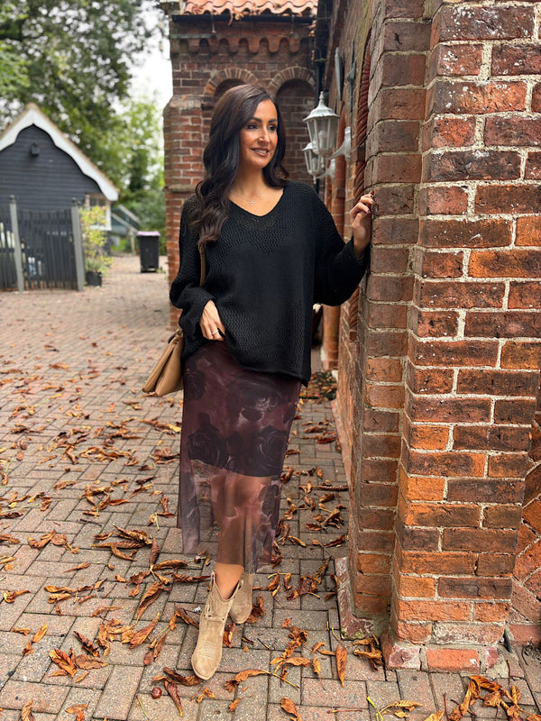 Black Multi Hole Heart Knit Amelia