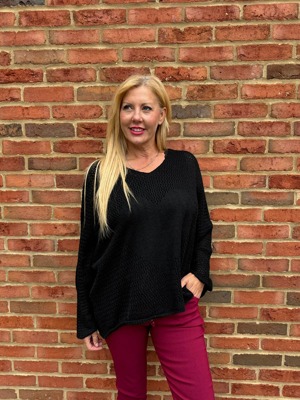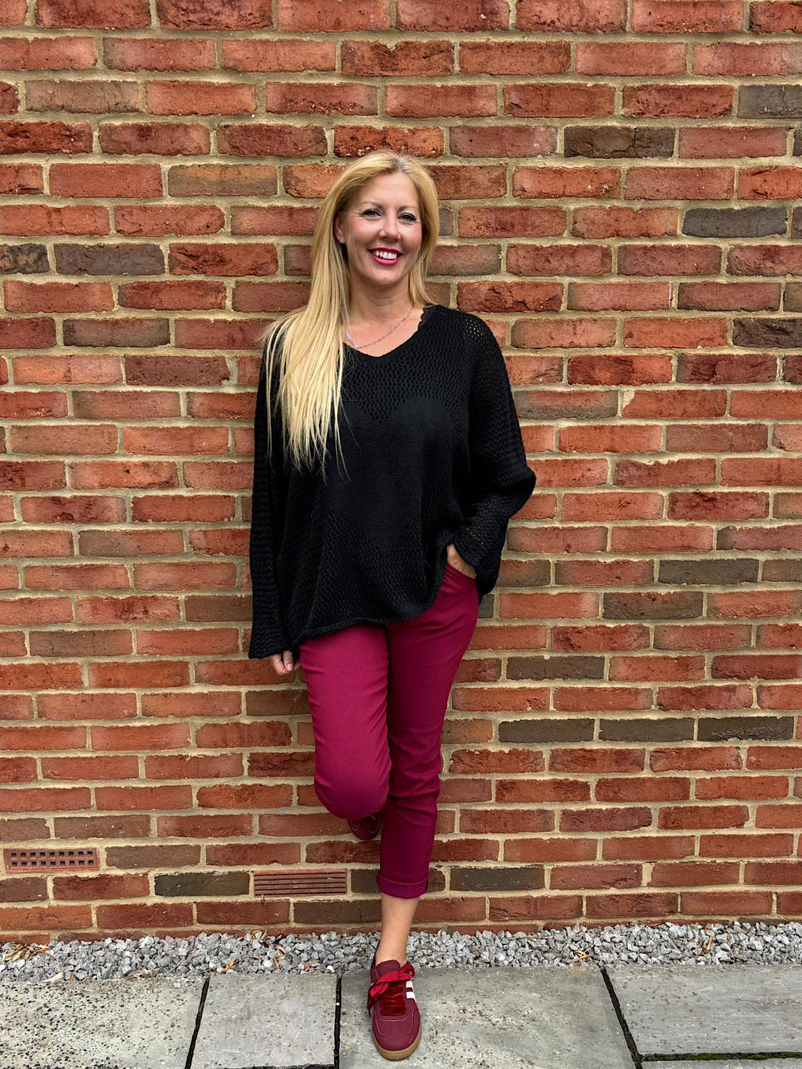 Embrace warmth and comfort with the Multi Hole Heart Knit Amelia. Crafted with a super soft fabric, its delicate multi-hole design adds breathable texture, while the subtle heart pattern at the centre brings a gentle, heartfelt touch. Perfect for cosy days, this knit combines softness and style to keep you comfortable and confident all season long.