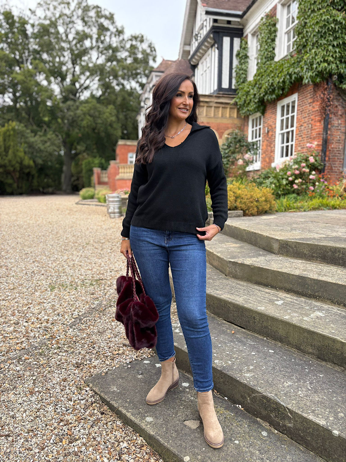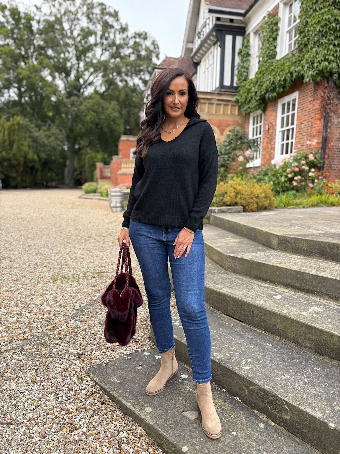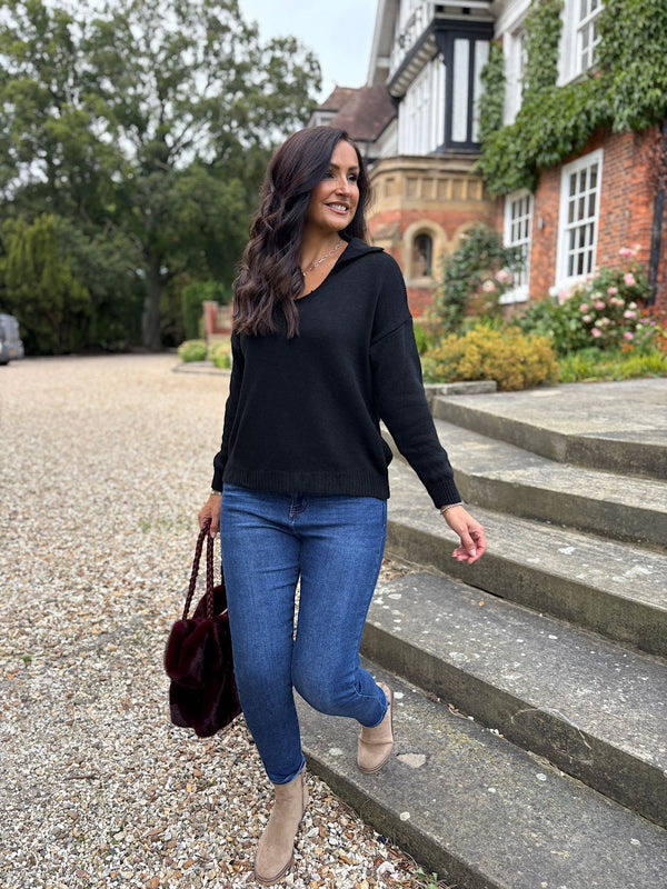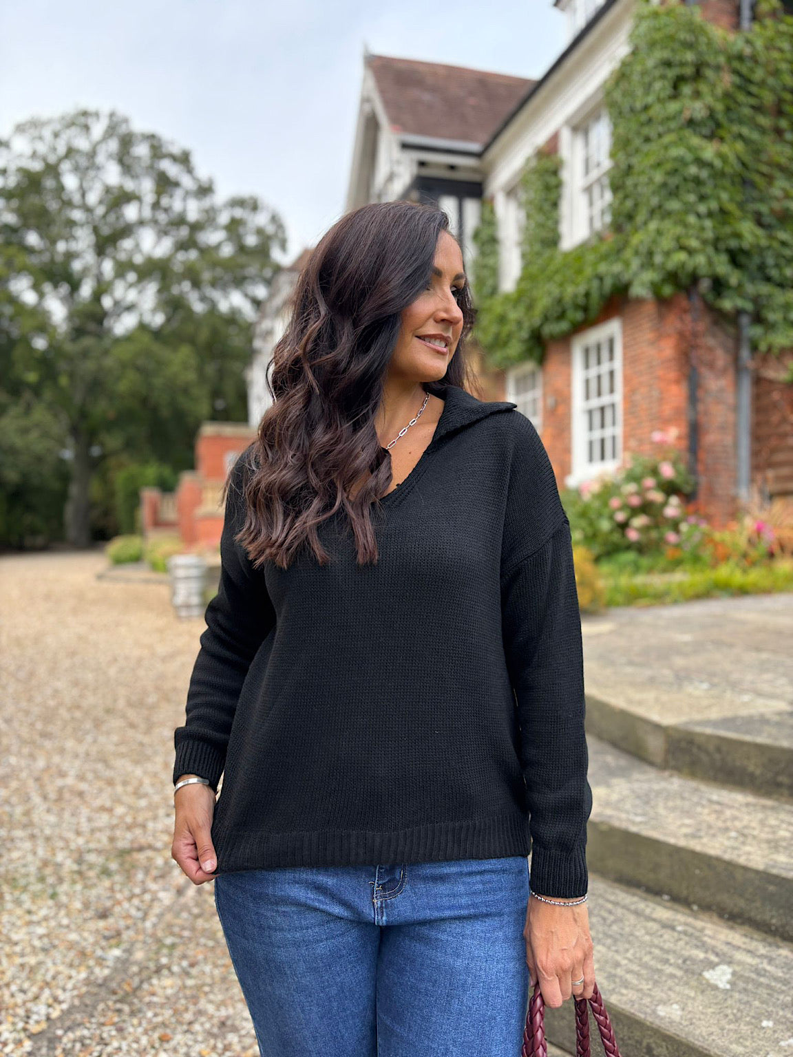 This Open Collar Jumper Rhea offers a comfortable fit with its long sleeves and soft knit fabric. The open collar adds a subtle touch of style, making it easy to layer or wear on its own. Perfect for cooler days, it provides warmth without sacrificing breathability, supporting your daily comfort with a timeless look.