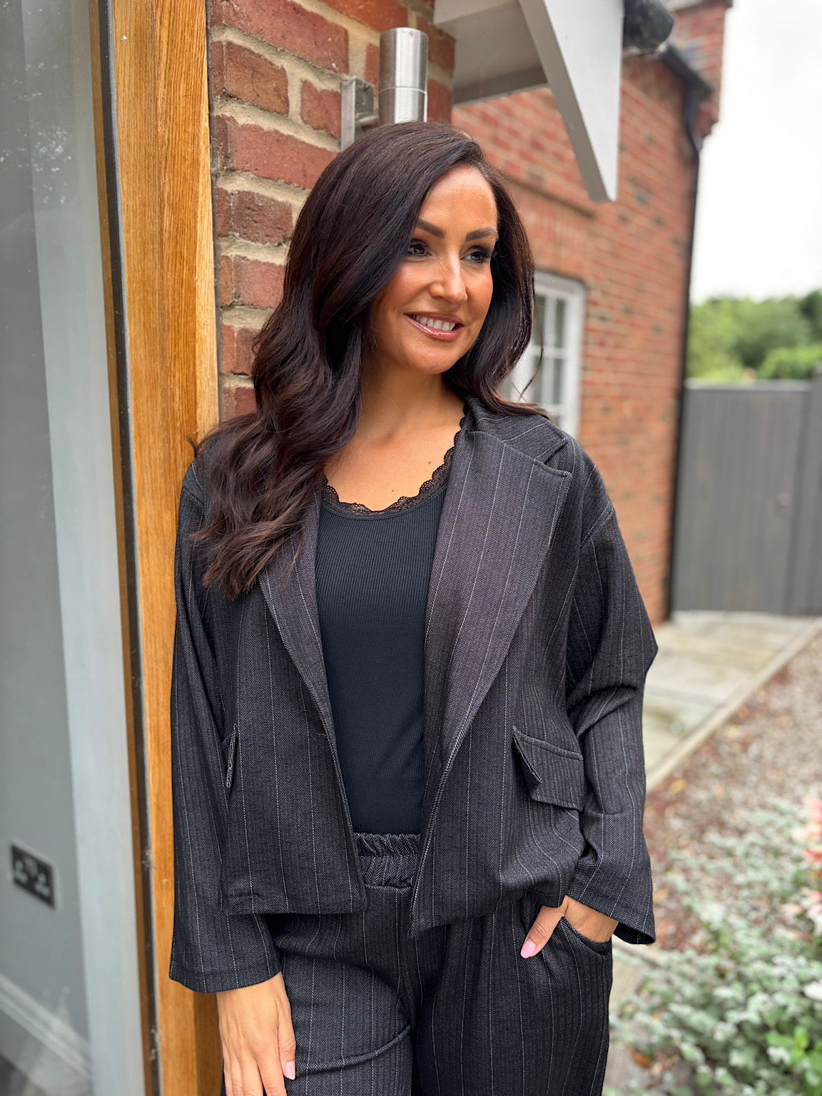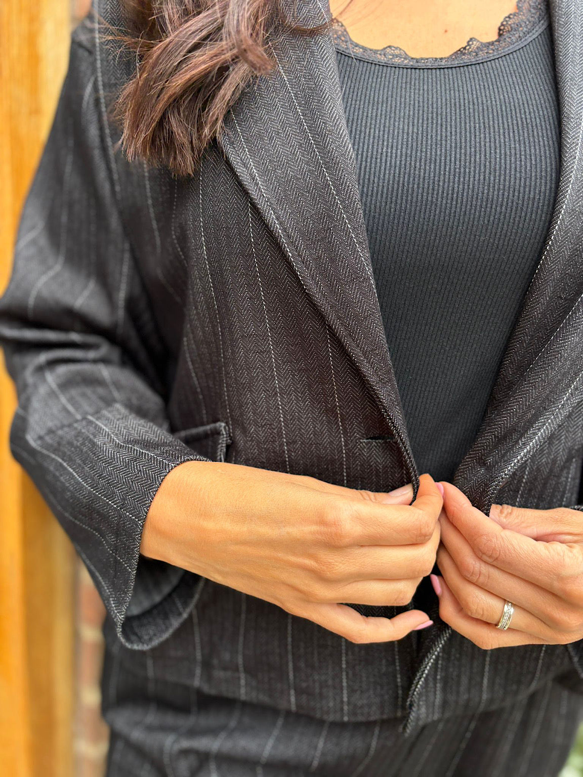 Pin stripes are this season’s essential trend, and the Pinstripe Jacket Geri perfectly captures this style. Its distinctive pattern adds a fresh, modern edge to any outfit, making it a key piece for those looking to stay ahead in fashion this season.