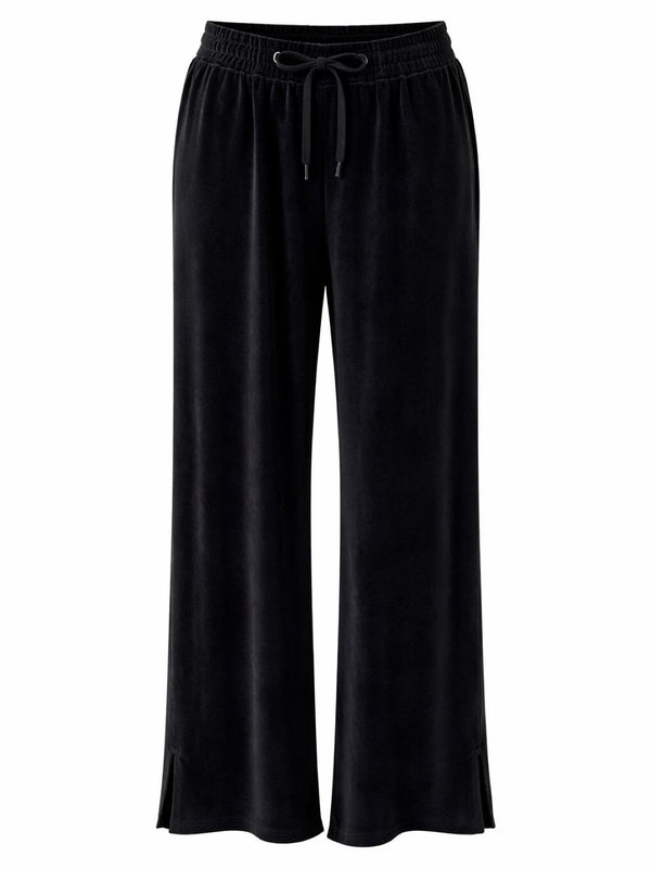 Black Pull On Wide Leg Velour Trousers