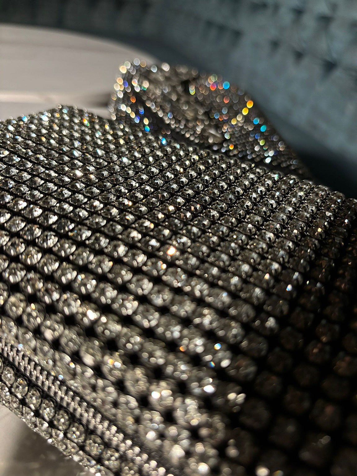 This Black Rhinestone Clutch Bag features a versatile design with two strap options, including an internal alternative chain strap to effortlessly elevate your style. Its secure zip closure keeps your essentials safe, while an internal zip compartment helps organize your belongings neatly. Perfect for adding a touch of elegance to any occasion.