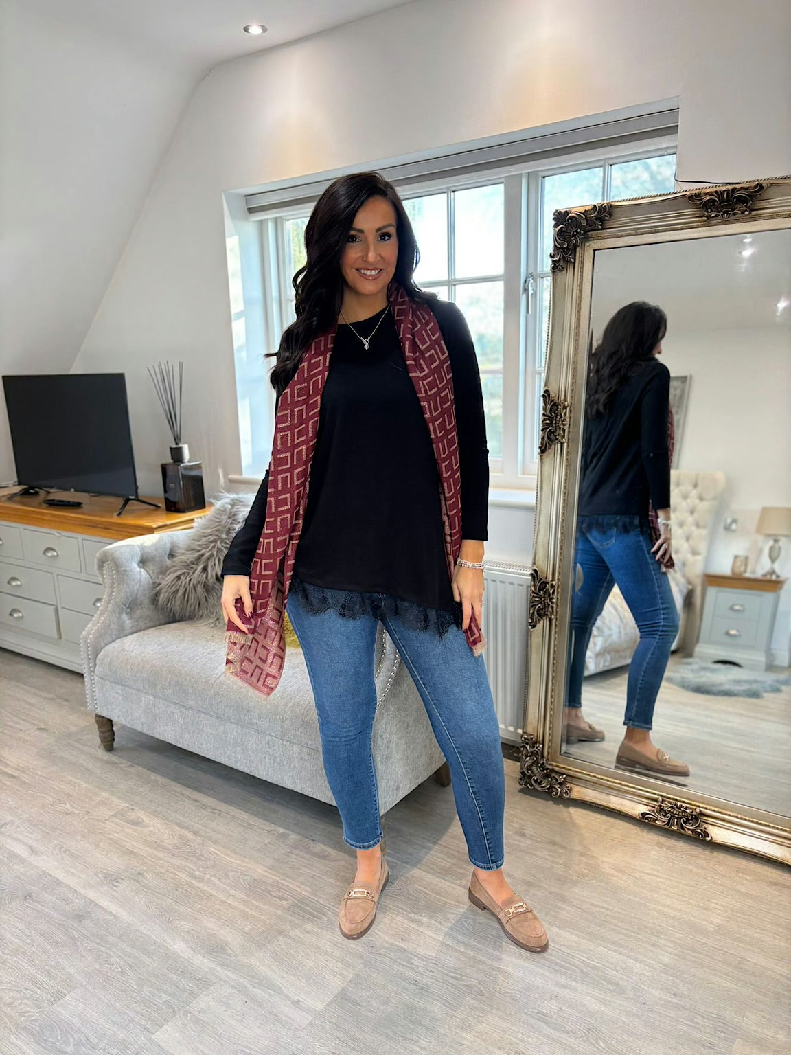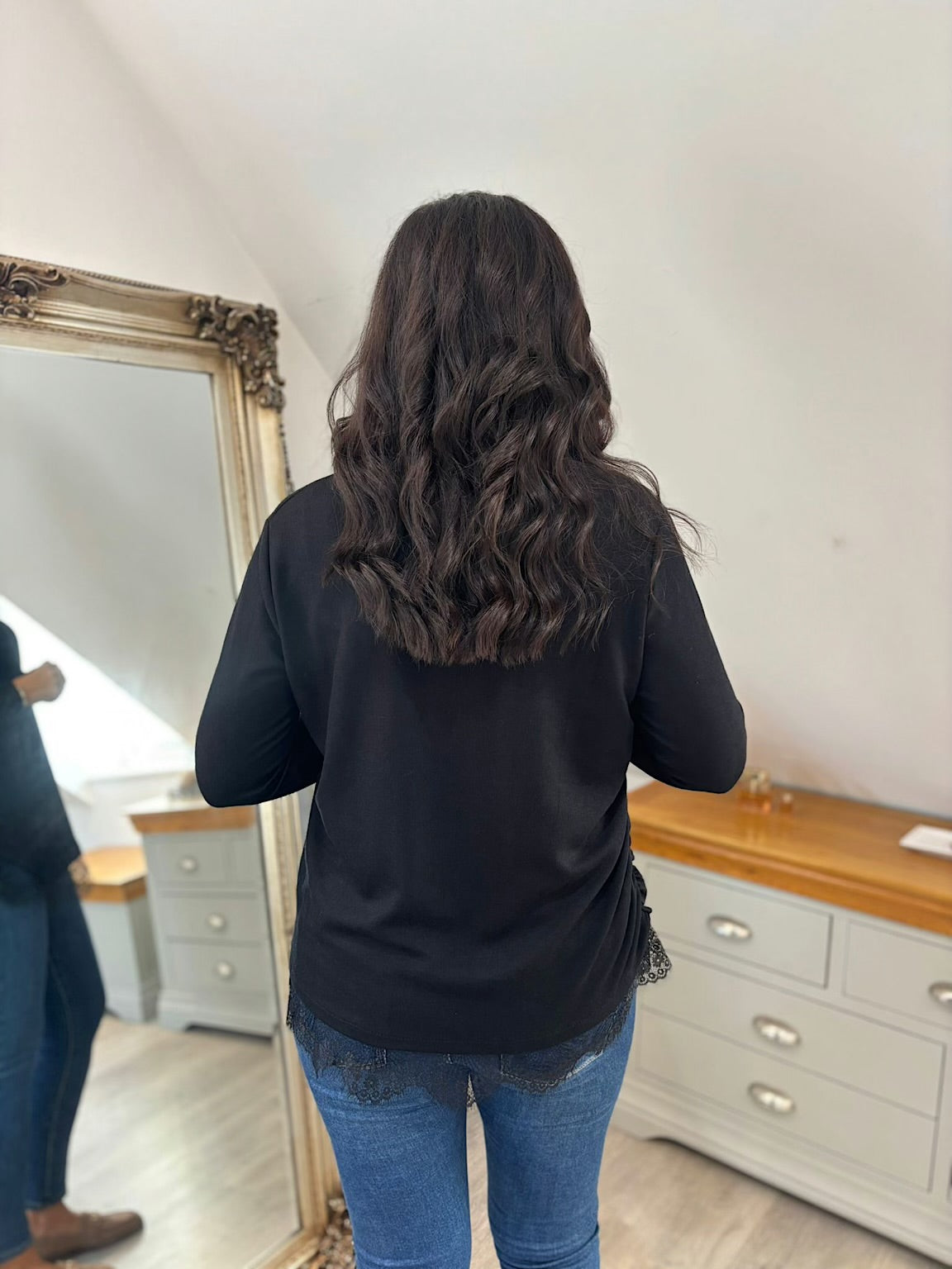 Embrace effortless elegance with this long sleeve top, designed to flatter and comfort. The super soft fabric feels luxurious against your skin, while the ruched detailing along one side creates a flattering silhouette. Delicate lace trim at the hem adds a touch of feminine sophistication. Perfect for layering or wearing solo, Janet transitions beautifully from casual days to evening occasions. A versatile wardrobe essential that celebrates your natural beauty.